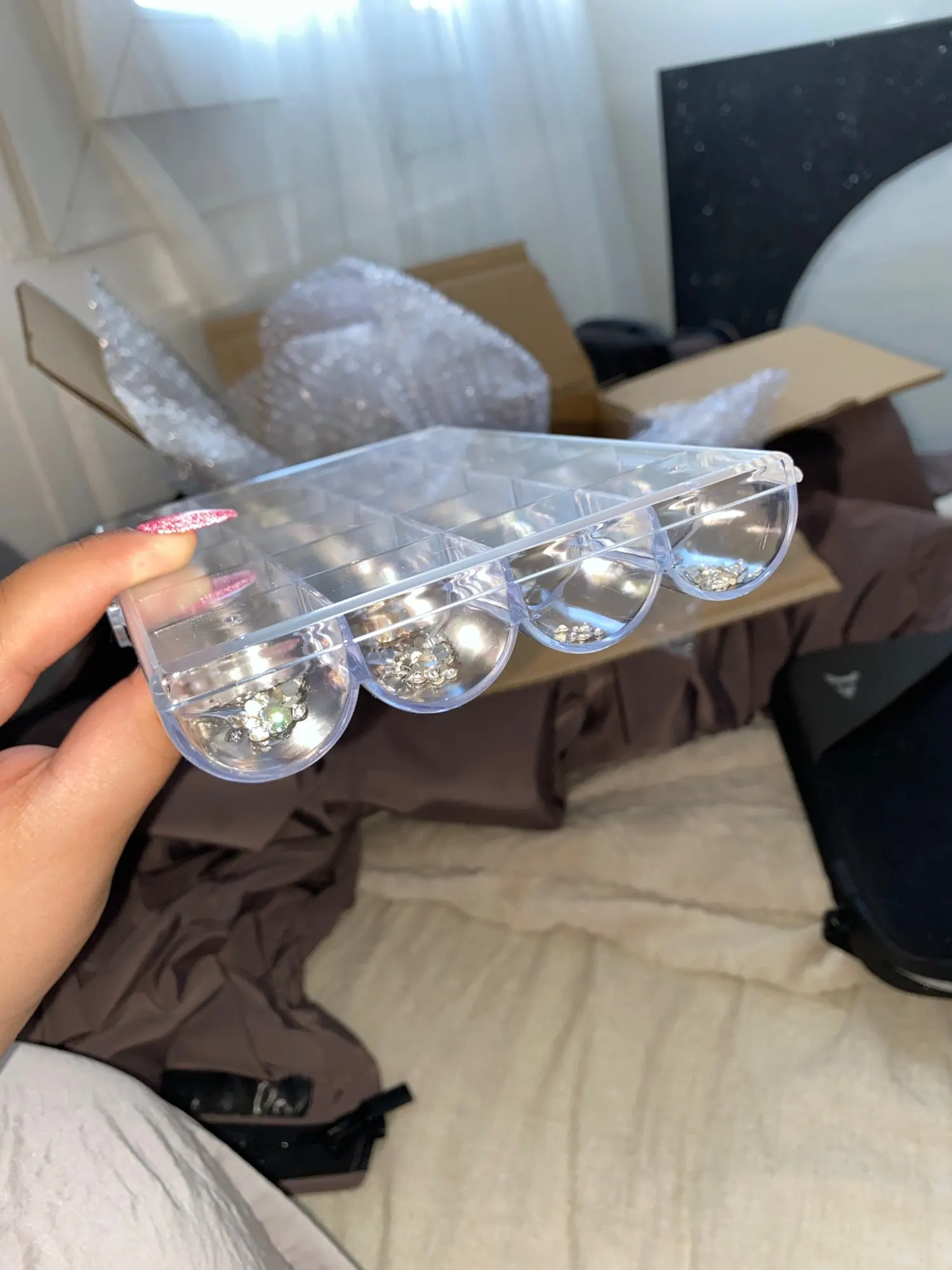 Посылка дошла до 5Post за 11 дней, раньше на 2 недели заявленного срока. Капитально упакована в картон и несколько слоев пупырчатой пленки, все целое. Приобрела для хранения украшений. Добрала как еще один ряд над другой акриловой шкатулкой для расположения в ящике комода. Выглядит отлично, очень нравится, планирую еще заказать. Рекомендую!