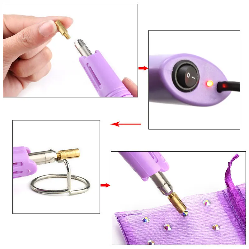 Быстро нагревается! Переходная вилка фиолетового цвета, 7 наконечников, 5 секунд, аппликатор горячей фиксации, палочка, термофиксатор, аксессуары для стразы B1979