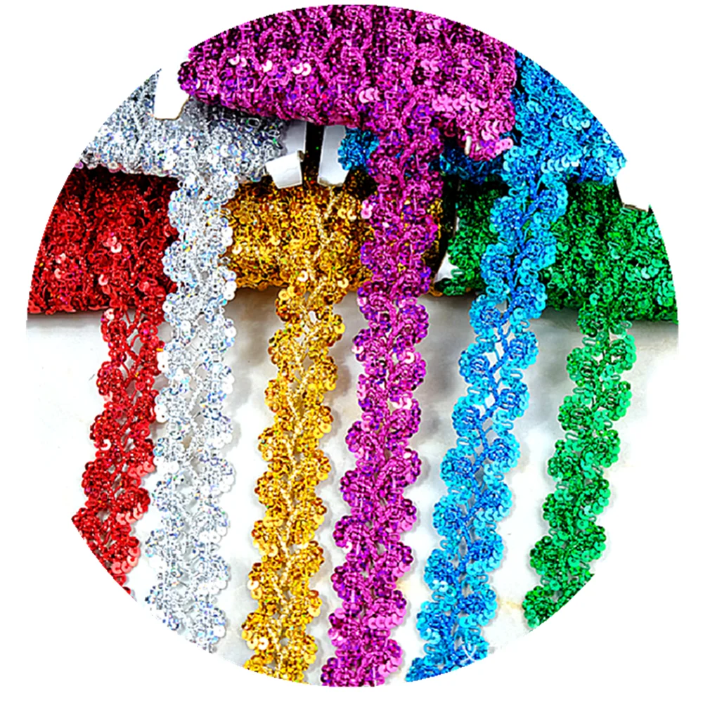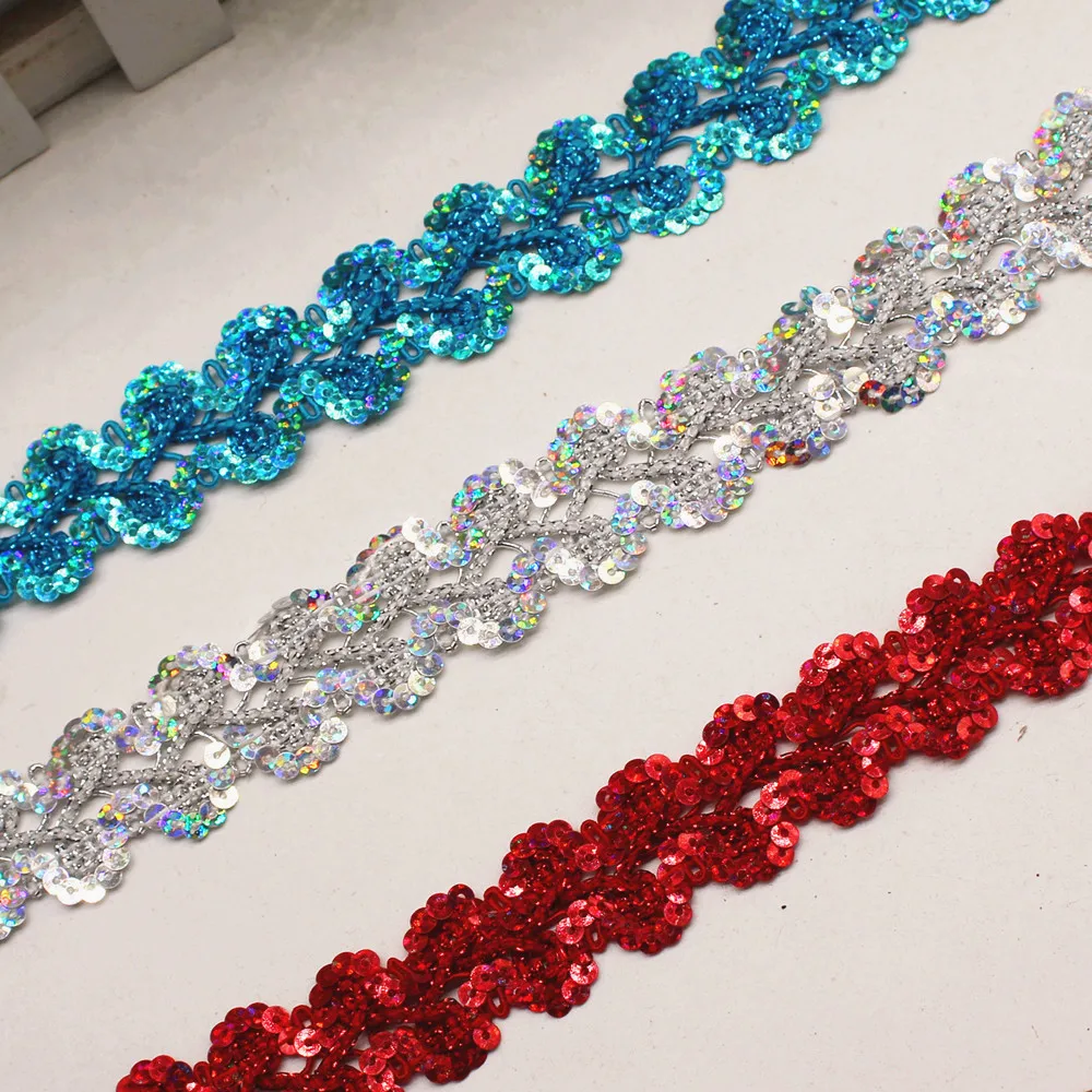 12 ярдов, кружевные ленты с блестками и вышивкой, плетеная шпуля, золотистая и серебристая шпуля, 1 дюйм в ширину