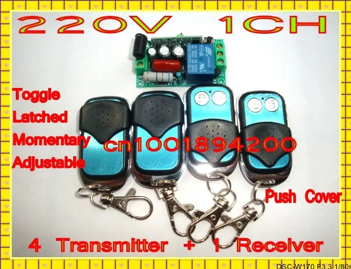 1. Рабочее напряжение: ac220в-+ 10%2. Максимальный ток: 10A (лучше, чем 7A)3. Канал: 1CH4. Рабочая частота:315 МГц/433MZH опционально (пожалуйста, оставьте нам массаж)Чувствительность приемника: -110 дБРабочая температура: -10'C - + 60'C