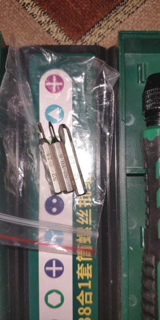 Посылка приехала очень быстро. Доставлена курьером. В комплект положили еще три биты. Коробушка прикольная: с наружи как резиновая(ПВХ,) крышка на магнитах. От фото в описании комплект отличается цветом бит, но на вид качество не хорошее.