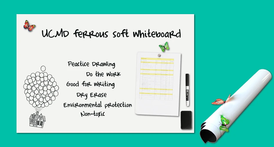 Мягкая Белая доска U & U изготовлена из полимерных материалов, импортной ПЭТ-пленки, железного порошка и резины, высокого качества и соответствия экологическим стандартам. Прочная поверхность может быть удалена более чем в 100000 раз. В настоящее время мы используем новый материал, который производится самым профессиональным производителем Китая с превосходными магнитными свойствами и передовой технологией поверхностного монтажа.