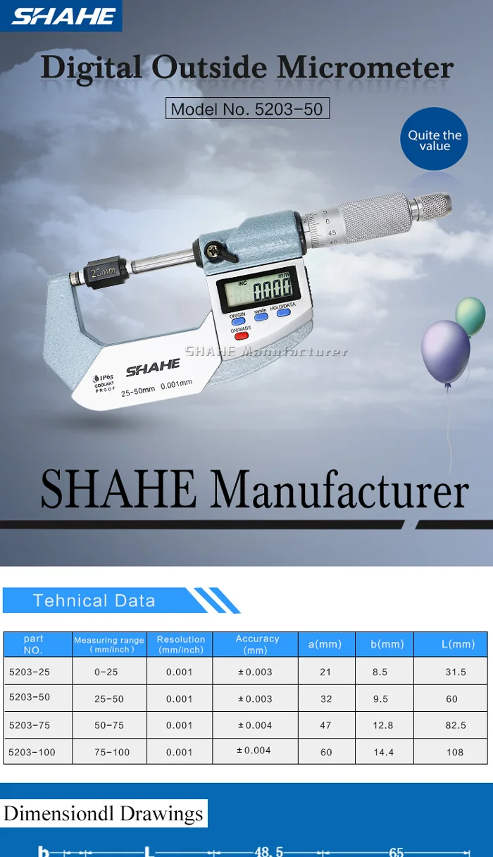 1,4-пуговицы электронный цифровой микрометр 2.IP65 водонепроницаемый 3. С атласно-хромовой шкалой 4. Высококачественный Теплоизоляционный захват. 5. Измерительные поверхности изготовлены из карбида вольфрама. 6. ХРАПОВИК постоянной силы на наперсток. 7. Упакован в пластиковый чехол.
