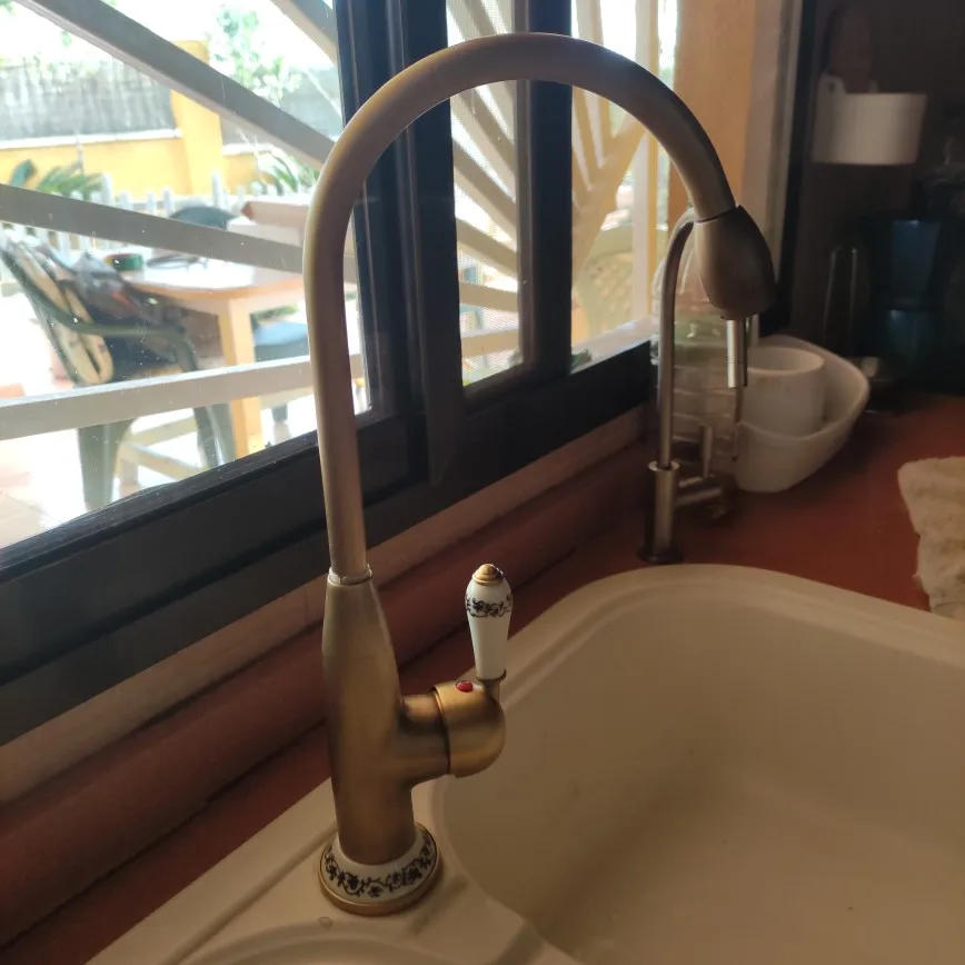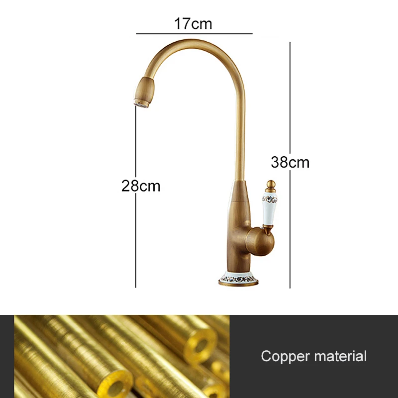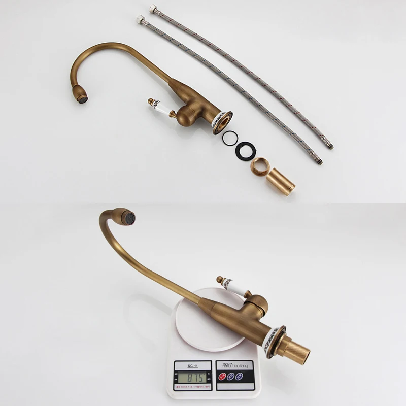 Кухонный Смеситель 7513, античный бронзовый кран с керамическим краном, для горячей и холодной воды на раковину