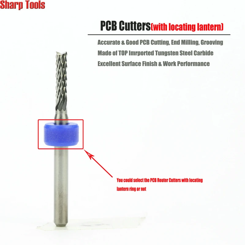 (Вы можете выбрать фрезы для печатных плат с установочным кольцом фонаря или нет)
