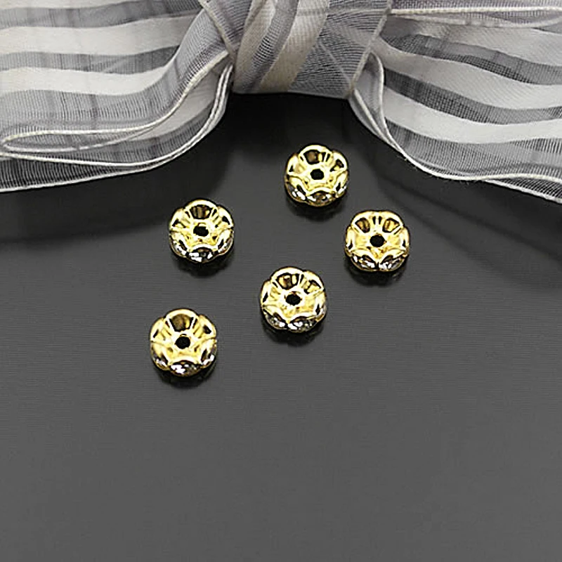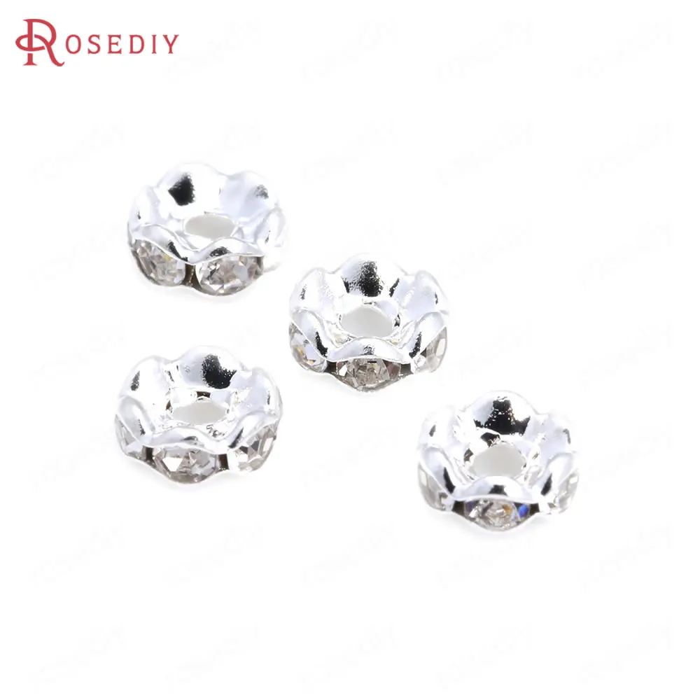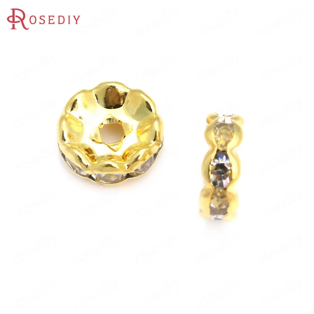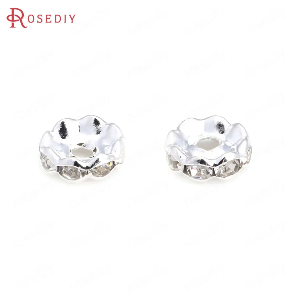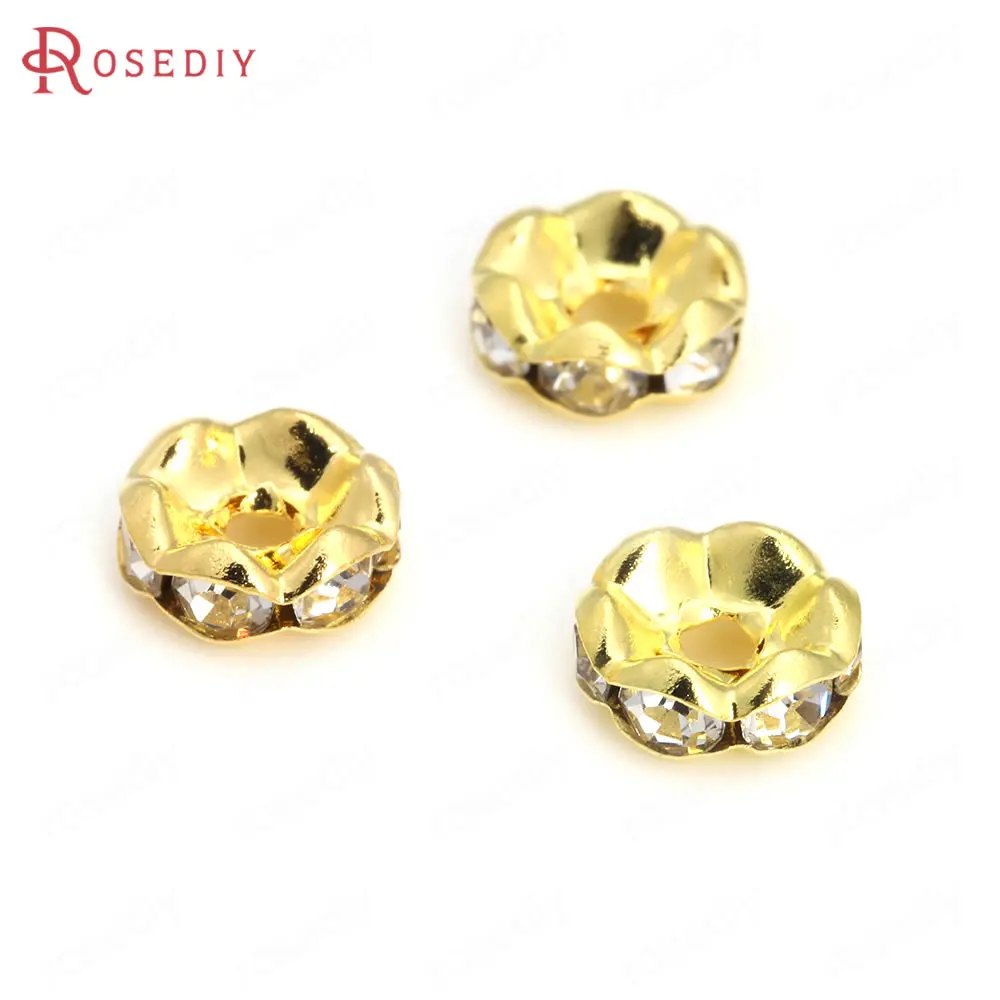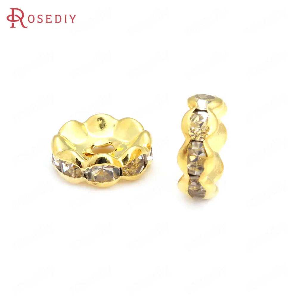 Бусины из латуни с волнистыми краями, со стеклянной стразы, Проставка для браслетов, комплектующие для ювелирных украшений, 50 шт., 4 мм, 6 мм, 8 мм, 10 мм
