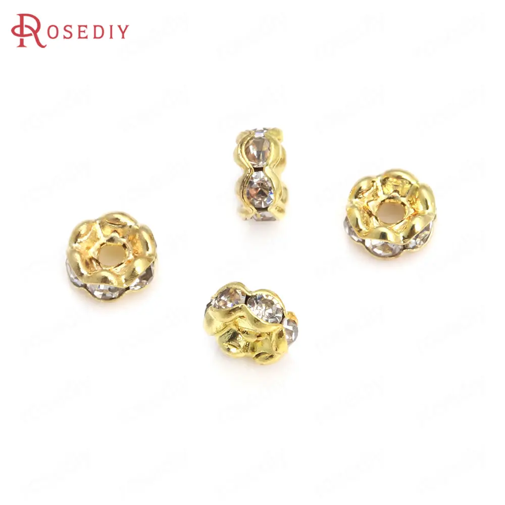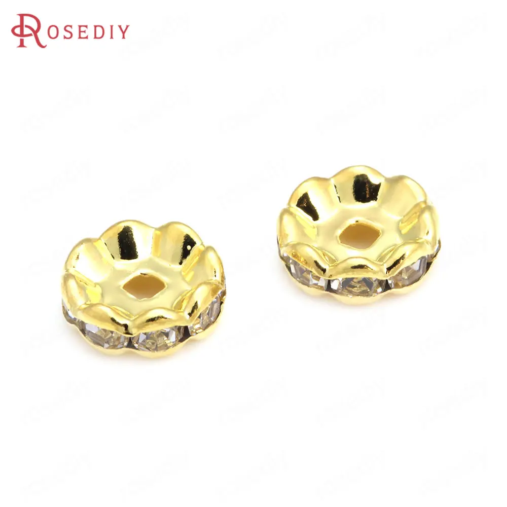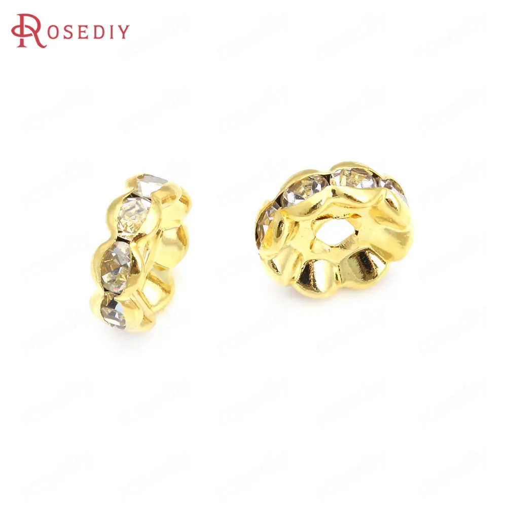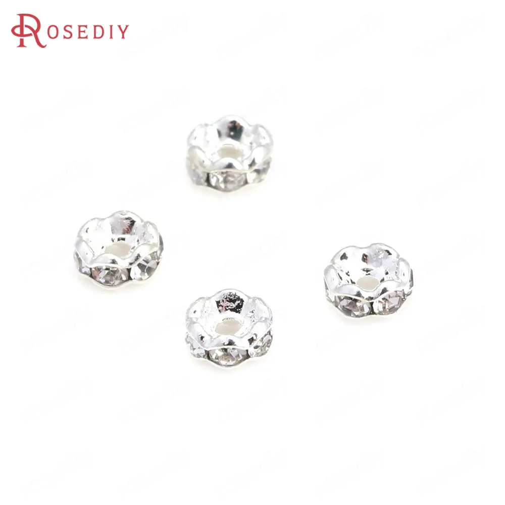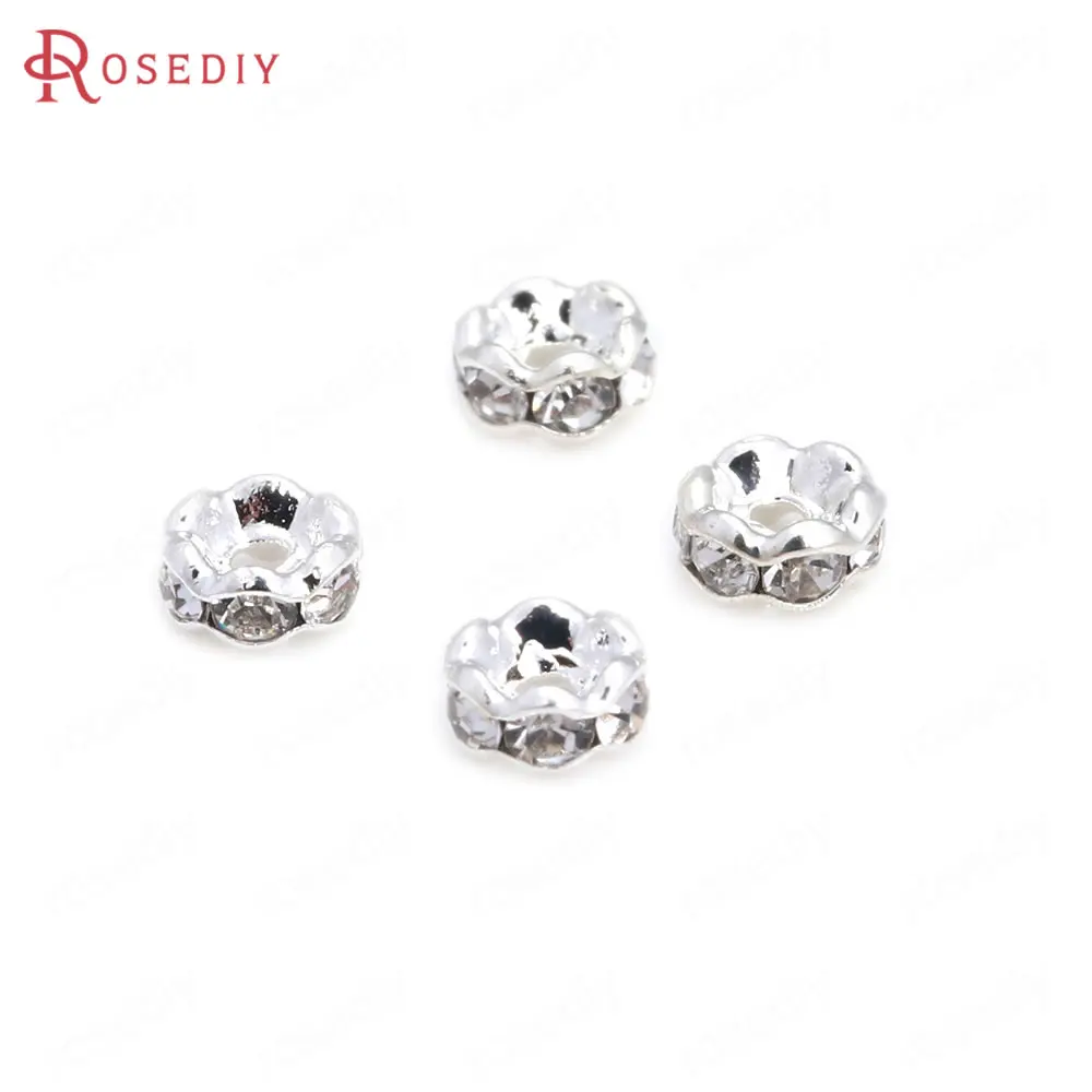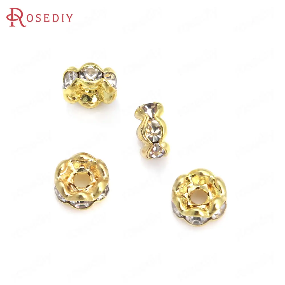 Бусины из латуни с волнистыми краями, со стеклянной стразы, Проставка для браслетов, комплектующие для ювелирных украшений, 50 шт., 4 мм, 6 мм, 8 мм, 10 мм