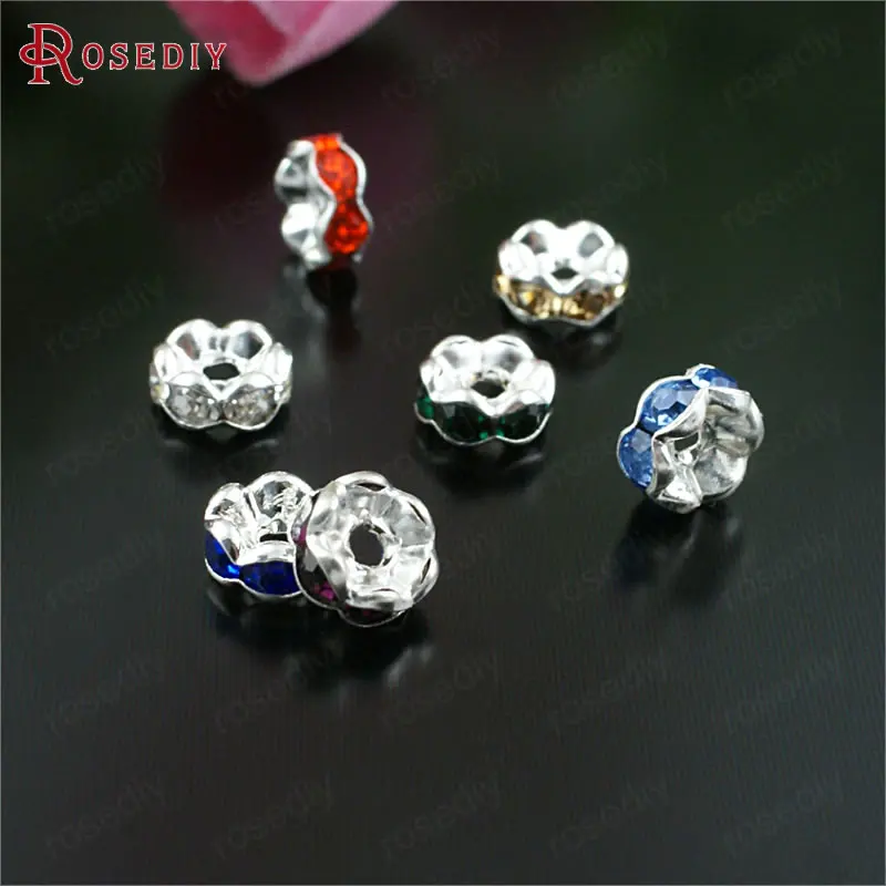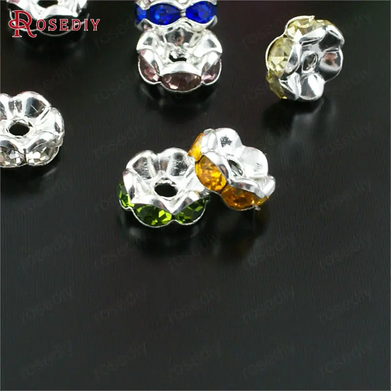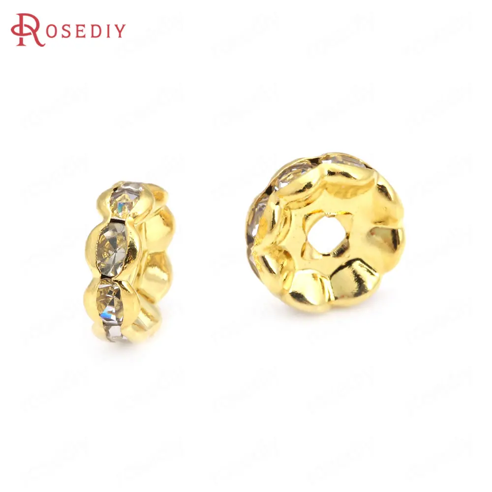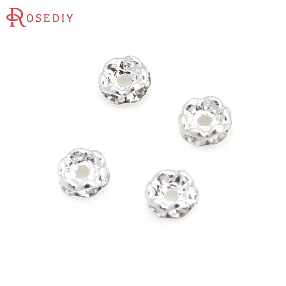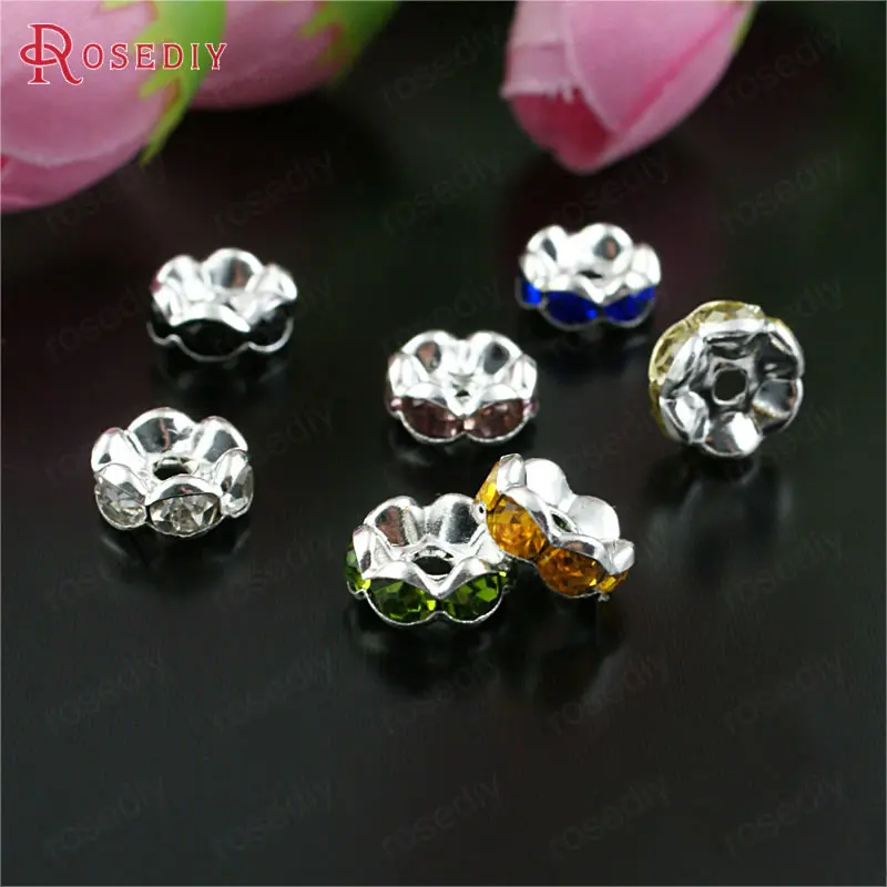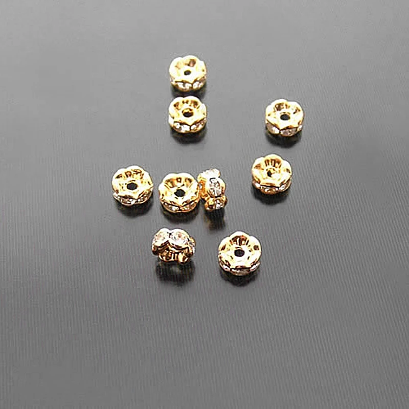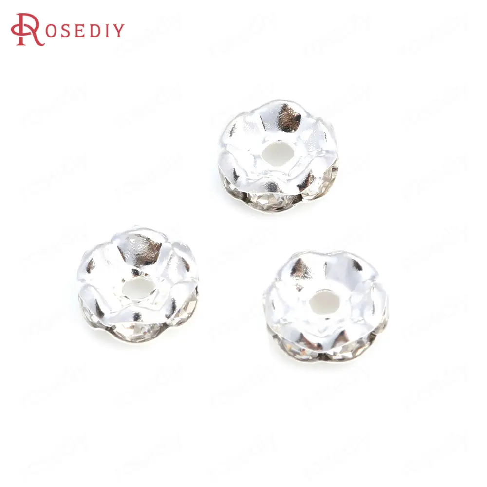 Бусины из латуни с волнистыми краями, со стеклянной стразы, Проставка для браслетов, комплектующие для ювелирных украшений, 50 шт., 4 мм, 6 мм, 8 мм, 10 мм