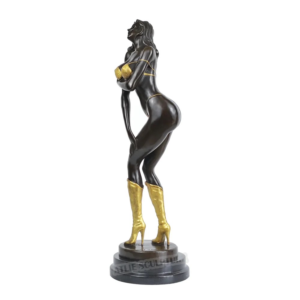 Бронзовая привлекательная женская статуэтка, скульптура для Западной Женщины, девушки, золотые фигурки для дома, декор для ночного клуба, высокий взрослый искусство