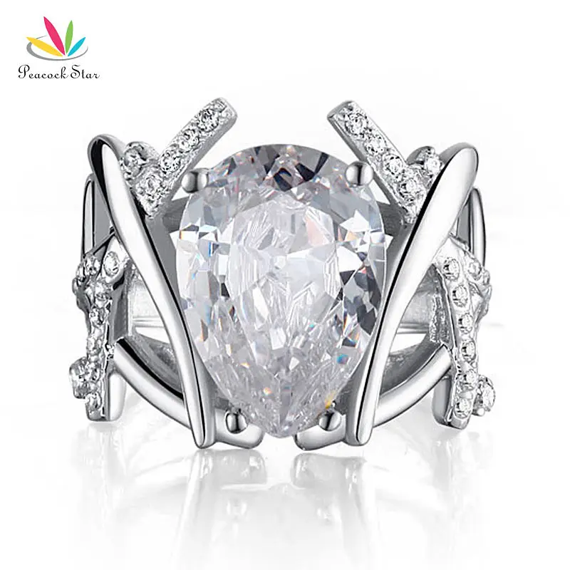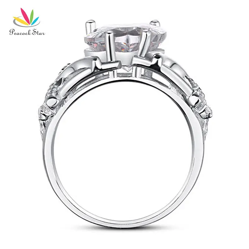 Обручальное кольцо из серебра 925 пробы, 4 карата, в форме павлина, с грушей, CFR8018