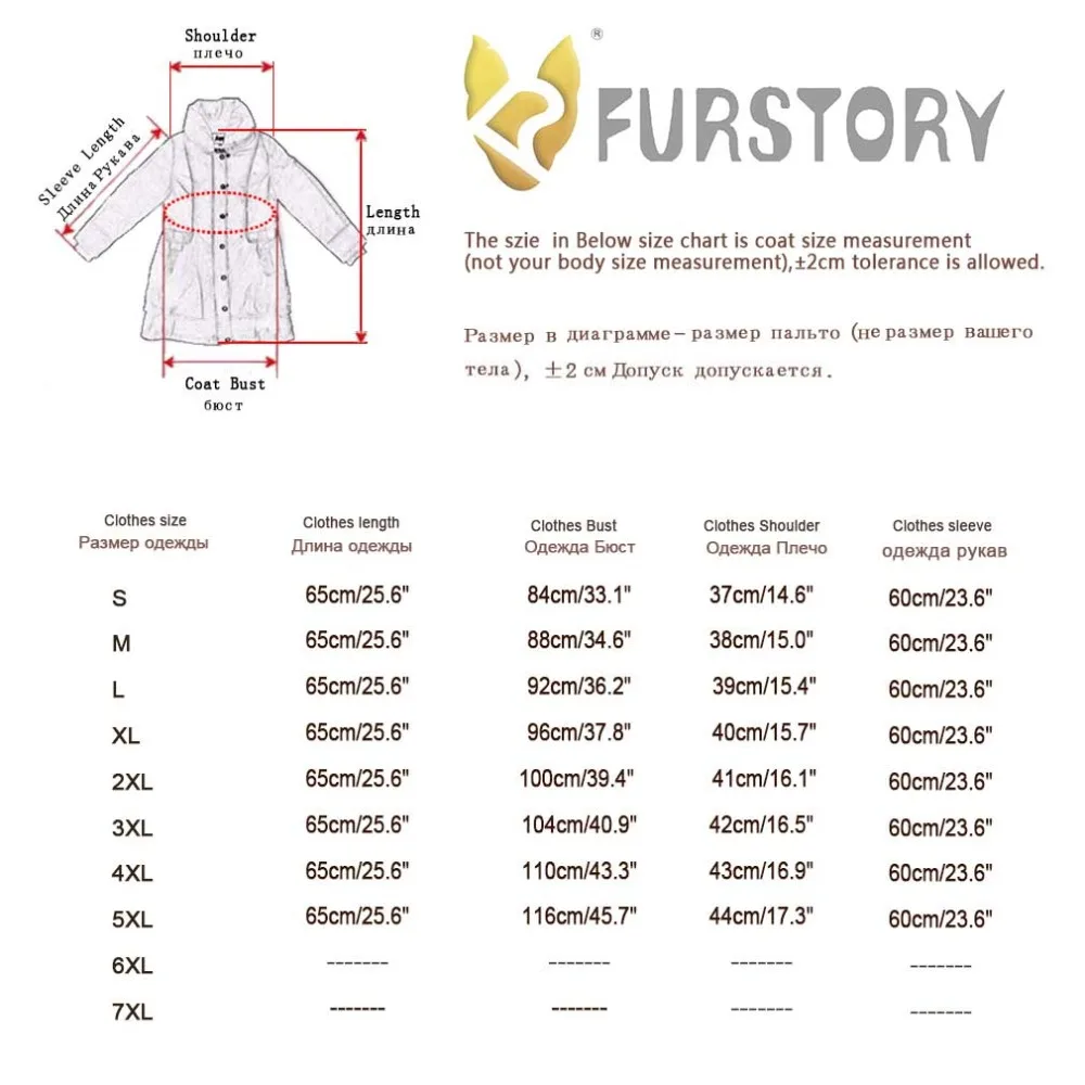 Размер бюста в ниже Размер диаграммы пальто размер бюста (не ваше тело размер бюста), Пожалуйста, убедитесь, что вы будете выбирать пальто по крайней мере 4 см больше, чем ваше тело размер груди вы измерили. Например, если ваш бюст тела размер 92 см, вам лучше выбрать размер бюста 96 см пальто.Если у Вас возникли вопросы о размере, пожалуйста, не стесняйтесь связаться с нами.