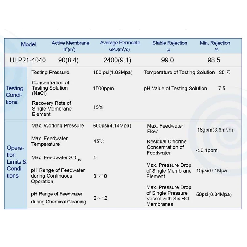 Vontron осмос ULP21-4040 мембранный элемент RO 2400 GPD для фильтра воды