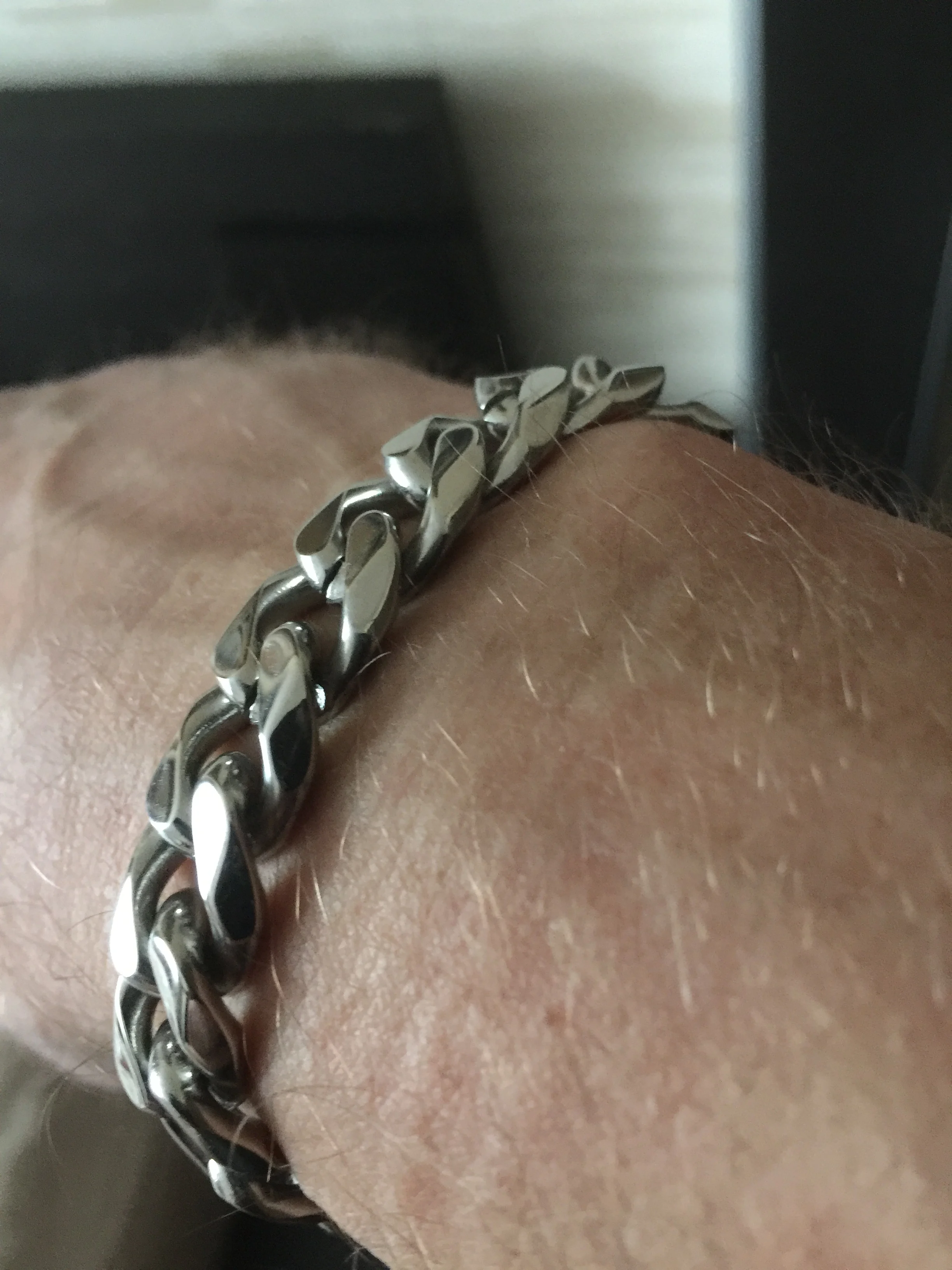 Отличный браслет. Нержавейка. Не ржавеет и не облезет.