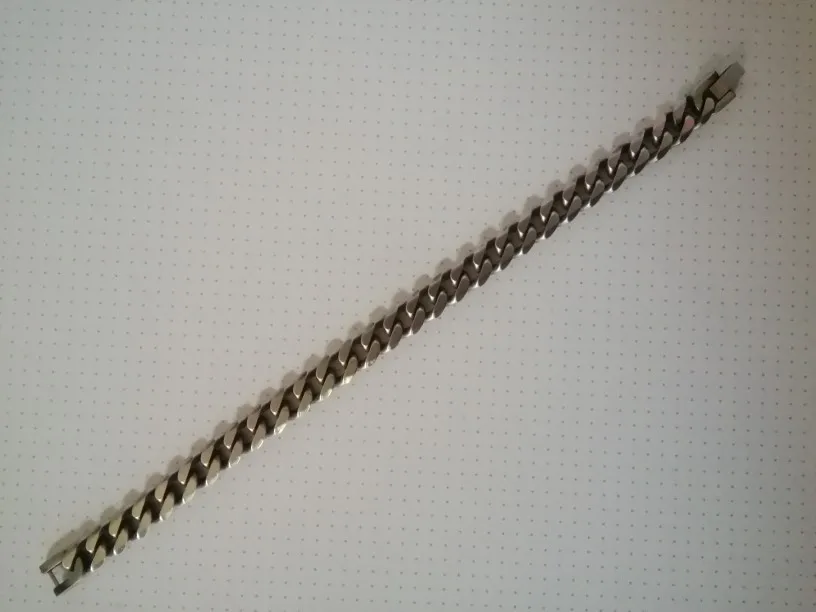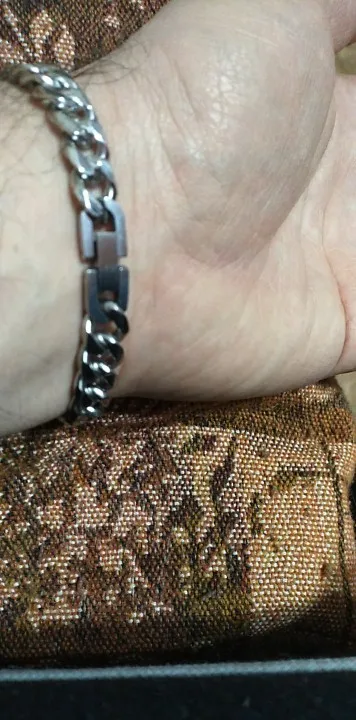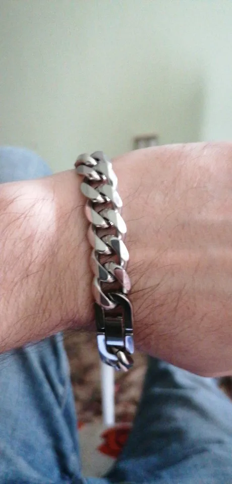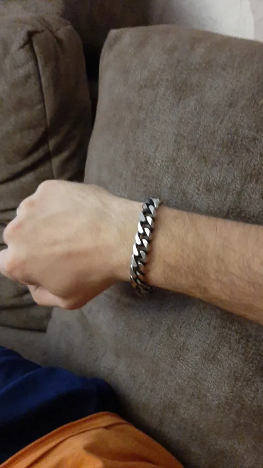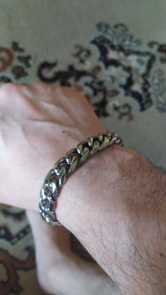 Отличный браслет.Замок вроде хорошо держит.На кисть 19.5см подошло идеально.На кисть побольше будет маловат.Так что размер указан точно. Качество самого браслета очень понравилось.Массивный ,грани четкие,На мужской руке смотрится солидно и красиво.Как будто из родированого серебра.Берите смело-останитесь довольными! Продавцу респект и удачи!
