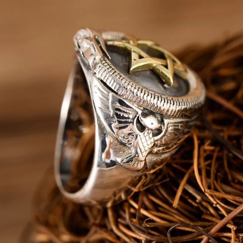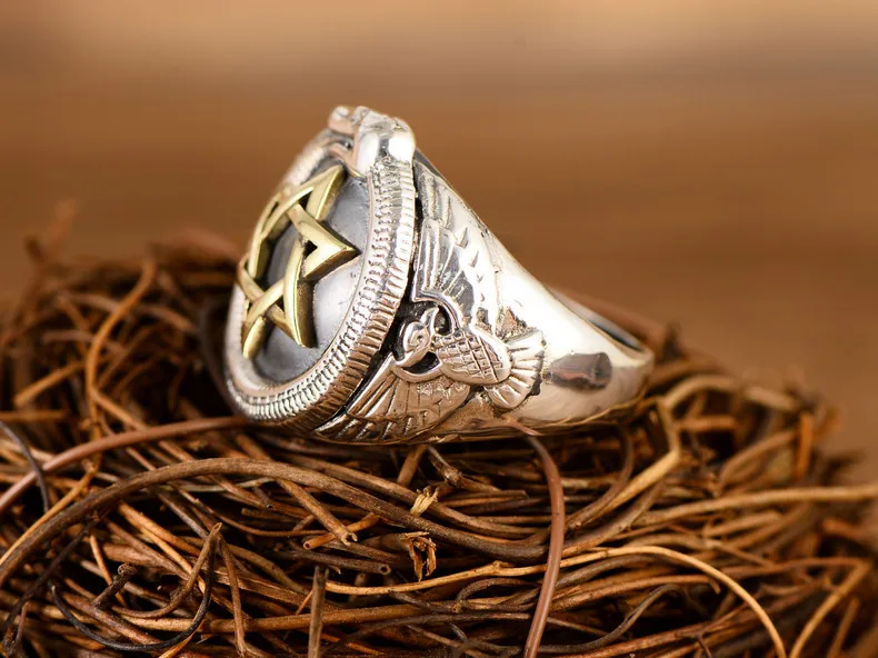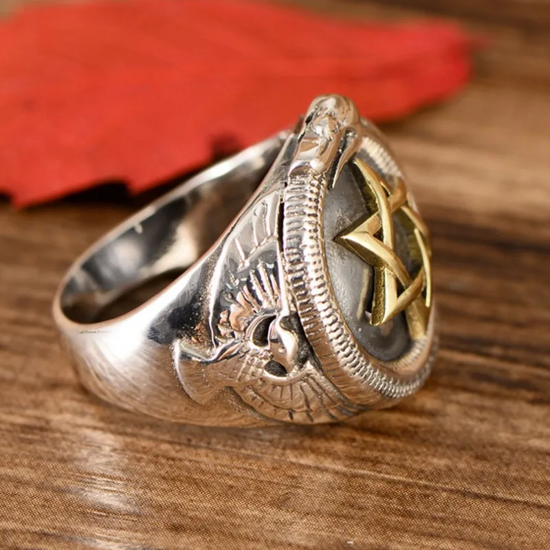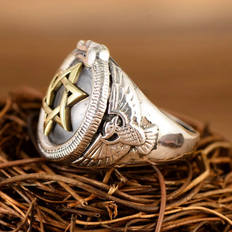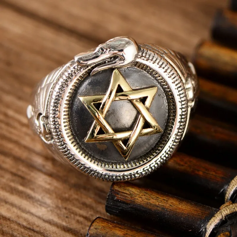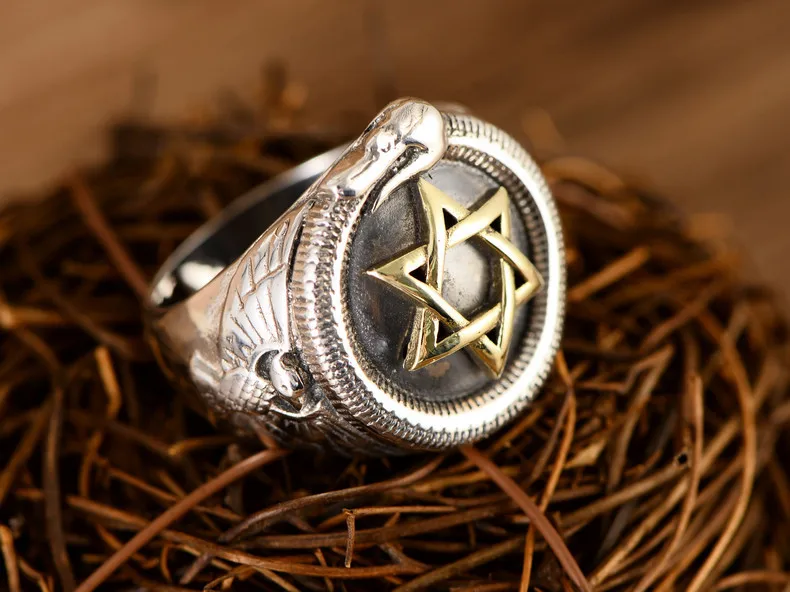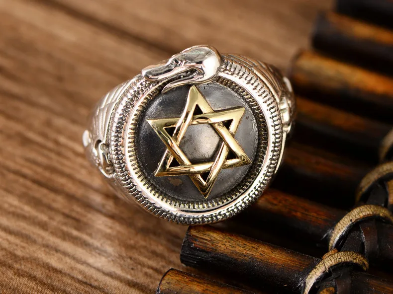 Кольцо мужское из чистого серебра s925 пробы, с шестиконечной звездой