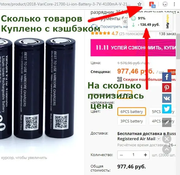 Отличный Товар. Внимание. Кэшбэк (возврат части суммы ). Деньги лишними не бывают. Очень мнОго магазинов. Регистрируйтесь по ссылке https://letyshops.*com/winwin?ww=610714 ( удалите в ссылке *). Пример: 1. Заходите на АлиЭкспресс. 2. Активируете кликом расширение,( оно должно позеленеть ). (Блокировщики рекламы должны быть отключены). 3. Выбираете товар в корзину или нажимаете кнопку КУПИТЬ. 4. Оплачиваете товар. 5. Ждёте сообщение на почту или всплывающее окно сообщение "НОВЫЙ КЭШБЭК ". При подтверждении получения товара получите сообщение "КЭШБЭК ПОЯВИЛСЯ" и радуетесь. Всем хороших покупок и больших кэшбэков. Просто попробуйте, Вам понравится. Информации про этот сервис очень много. Напоминаю: ДЕНЬГИ ЛИШНИМИ НЕ БЫВАЮТ. Посмотрите на мой кэшбэк!