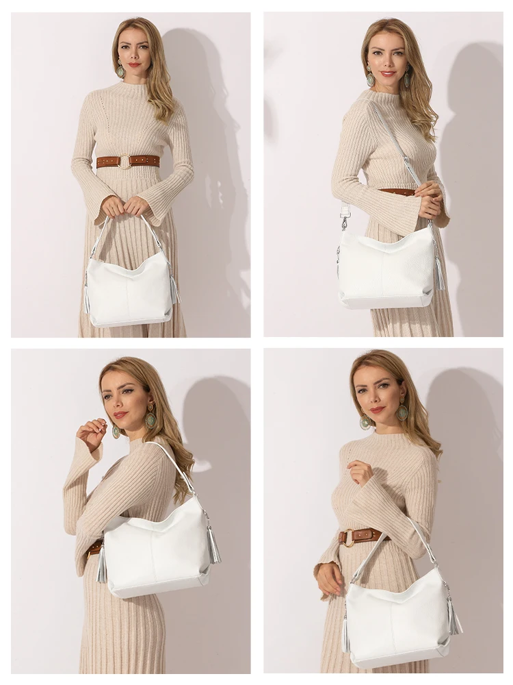 Новинка 2021, модная женская сумочка из мягкой натуральной кожи с кисточками, элегантные женские сумки-Хобо через плечо, сумка-мешок шопер сумка женская кожаная