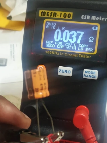 Это только для справки, разные производители конденсаторов имеют разные ЭСР, лучше проверить хорошую крышку ESR и сравнить с тем, что вы тестируете, обычно плохой колпачок с более высоким ESR в несколько раз больше, чем хороший.