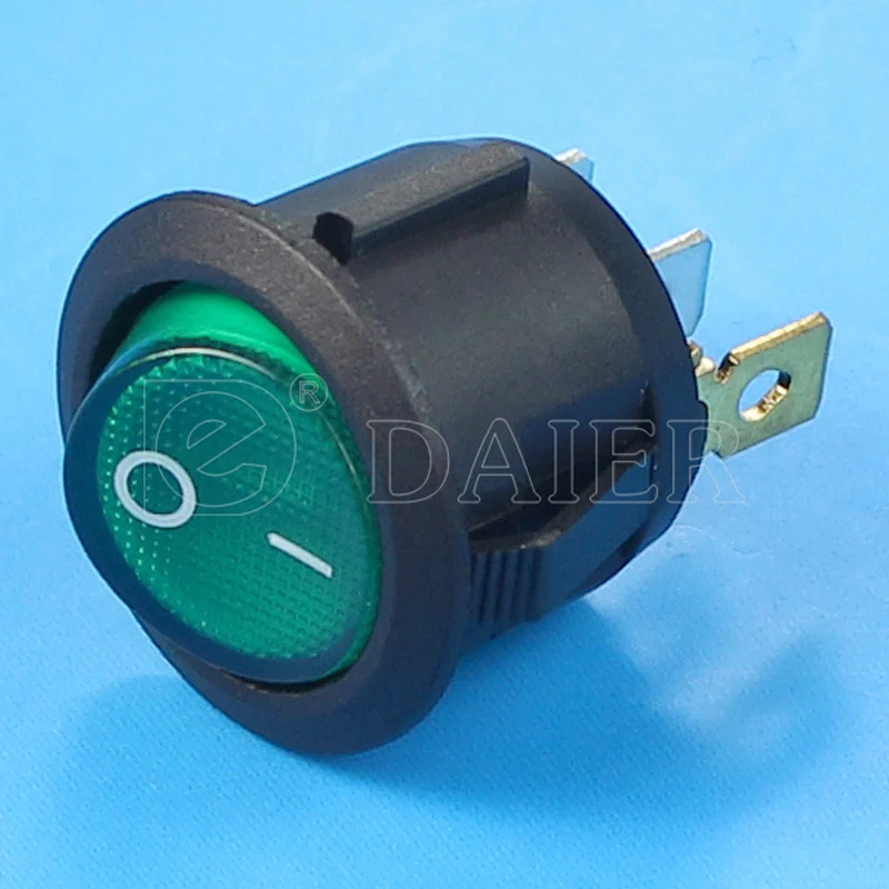 100 шт. KCD1-5-101N 20 мм круглый 3-контактный тумблер однополюсный вкл/выкл с лампой 12 В/24/220 В