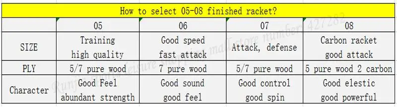 Долгая доставка. Качество ракетки, комплектация(чехол, пленки) выше всяких похвал. Уже попробовал в игре, заявленные характеристики соответствуют(скорость, вращение). Но надо ещё привыкать, достаточно увесистая. Накладки могут быть разные, у меня moon speed. Однозначно рекомендую.
