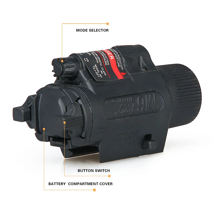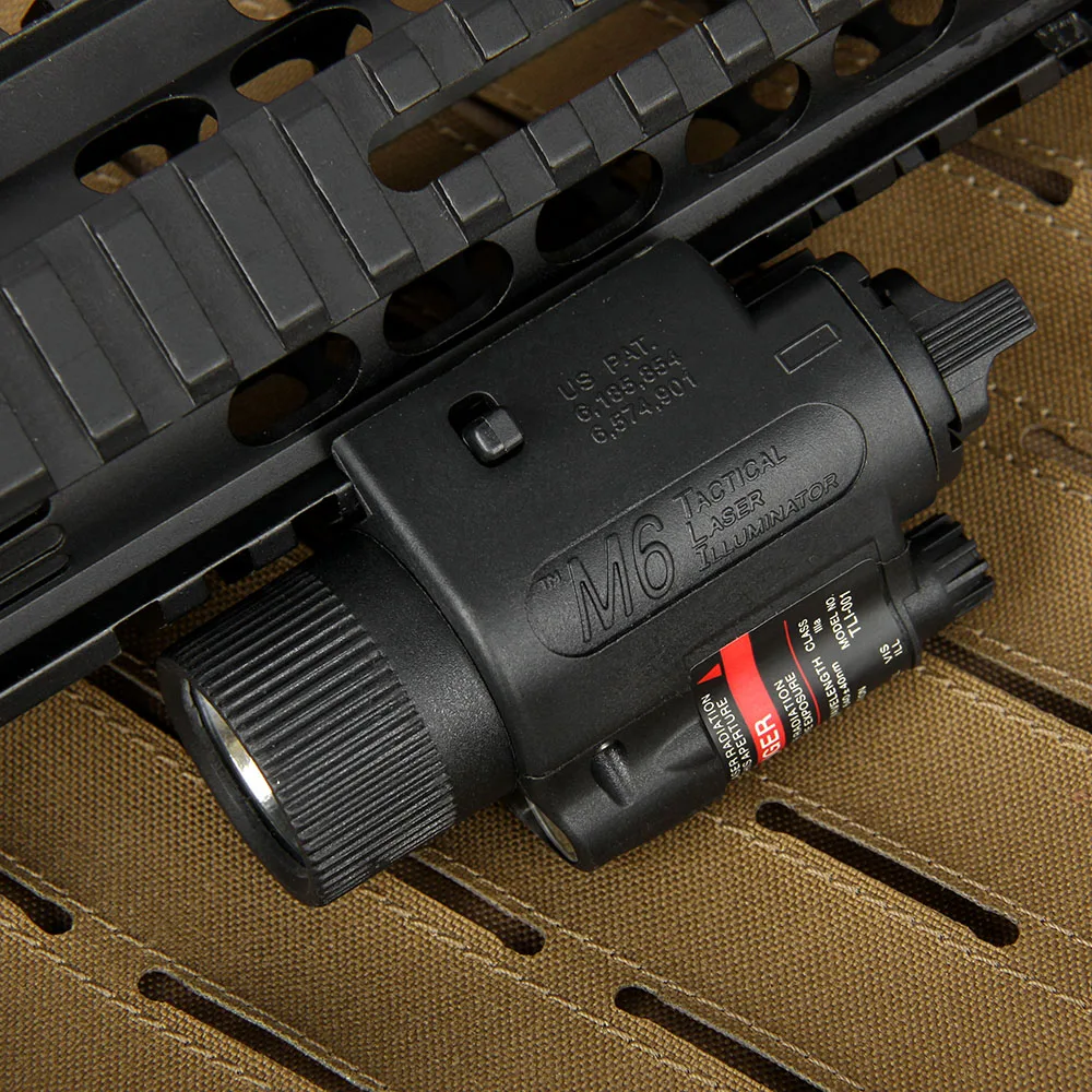 Тактический световой/лазерный блок M6 заработал впечатляющую репутацию благодаря прочному и надежному обслуживанию со стороны многих удовлетворенных конечных пользователей. Он оснащен системой крепления скользящего замка, галогенная лампа с пиковым выходом 90 люмен белого света, ярко-красный лазерный прицел, сменная задняя пластина и время работы 1 час. Есть 4 различных режима активации на выбор: только осветитель, только лазер, и ВЫКЛ. Питание от двух литиевых батарей 123A (НеВходит в комплект).
