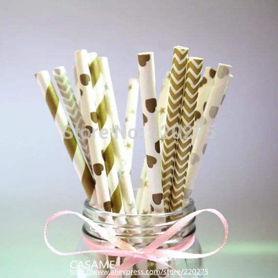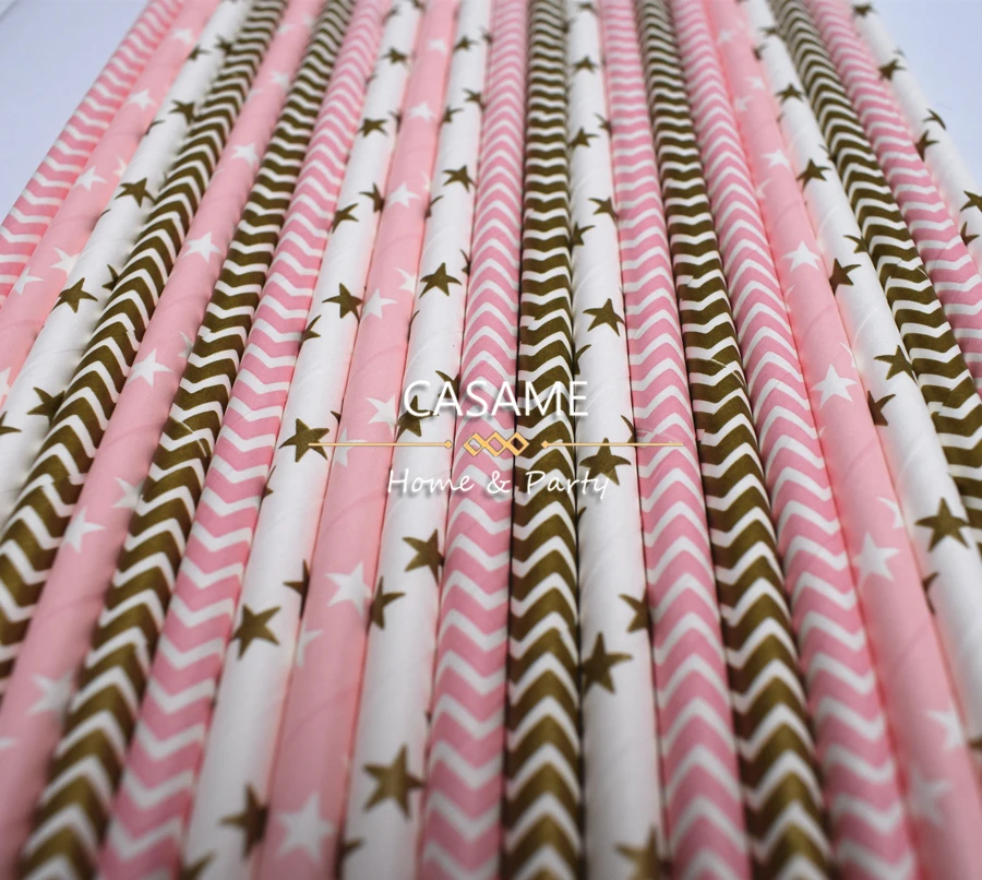 100 шт розовые золотые бумажные соломинки для вечеринки соломинки золотые серебряные бумажные разноцветные соломинки полосатые звезды шаблоны шевронов