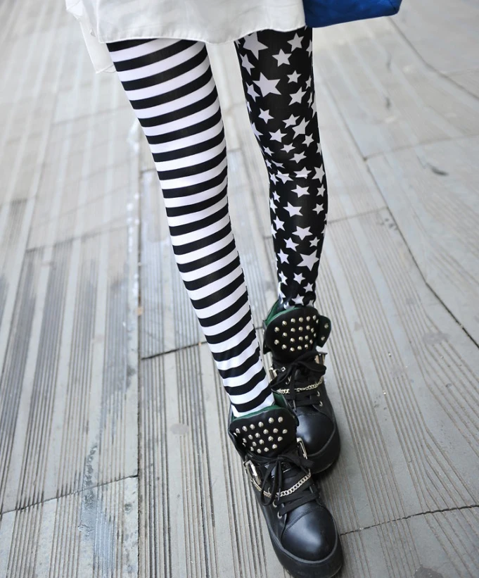 2018 фитнес-панк-принт, эластичные тонкие горизонтальные полоски со звездами, Прошитые хлопковые брюки, персонализированные леггинсы