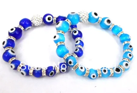 Новая мода Бесплатная доставка Темный Буле и озеро Буле глаз Стекло beas Хрустальный диско шар сглаза браслет