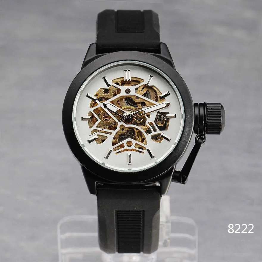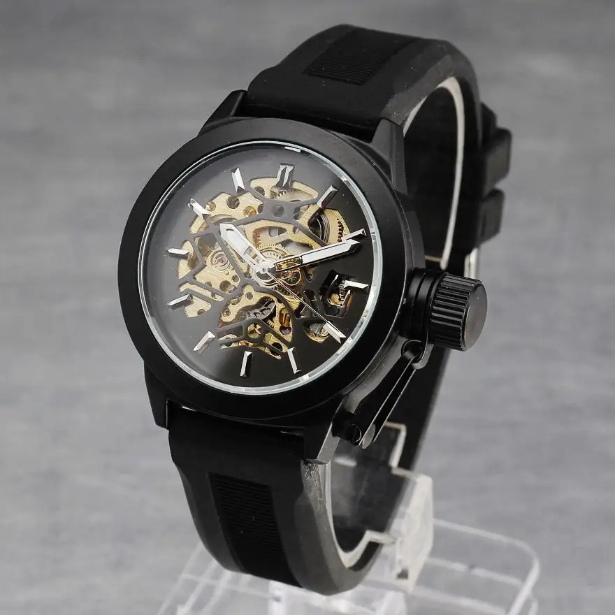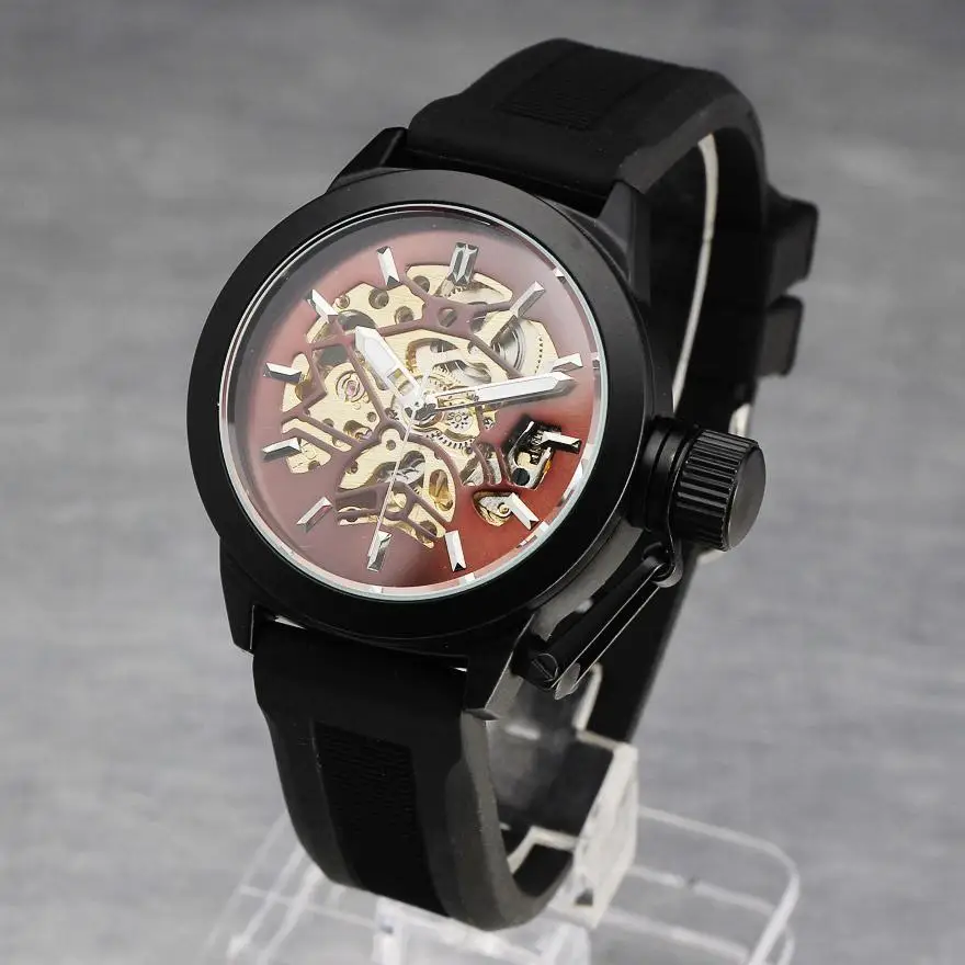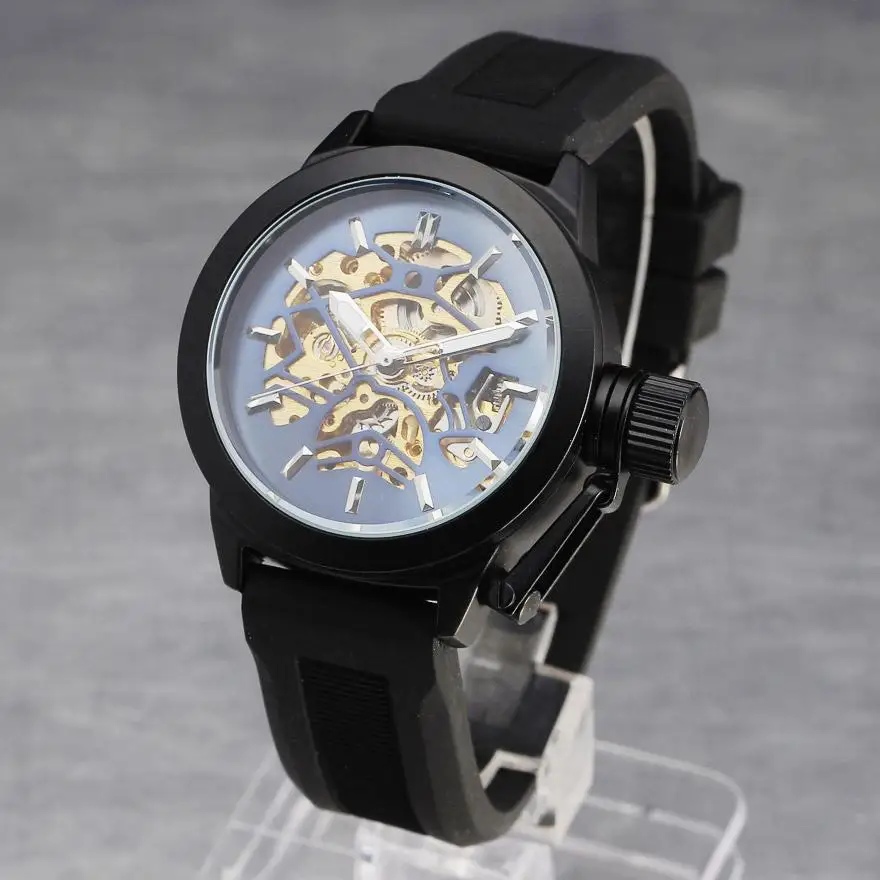 Новая мода Роскошный топ бренд WINNER автоматические механические мужские часы Стальной корпус Корона Крышка скелет черный резиновый ремешок наручные часы