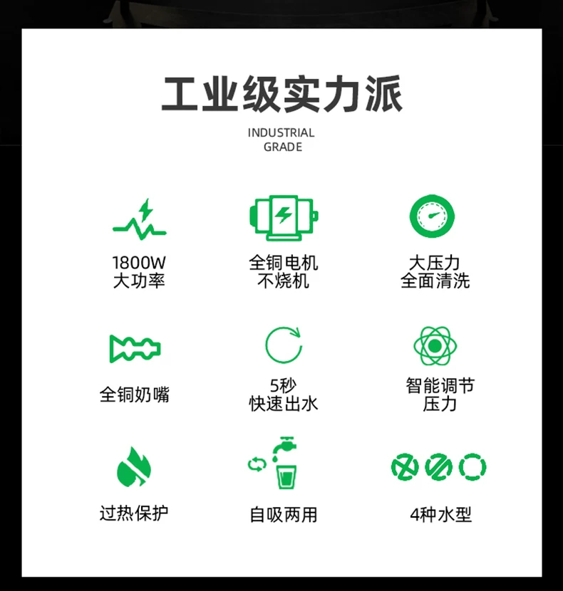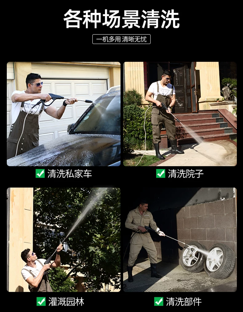 1. Мойка и обслуживание различных автотранспортных средств, инженерной техники, инженерной техники, сельскохозяйственной техники и высотных зданий, таких как мойка автомобилей, бульдозеров, бетономешалки, тракторов и т. Д. Это самый идеальный инструмент для чистки частных лиц автомобилей и мотоциклов.