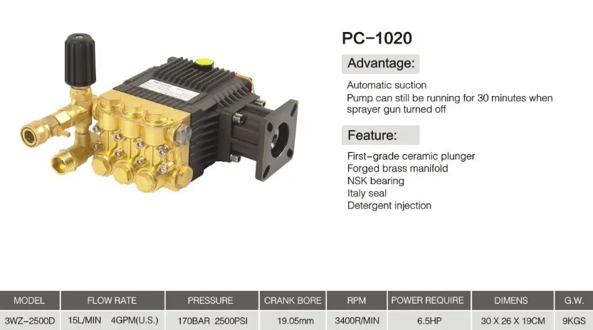 Головка насоса высокого давления, поликристаллический керамический поршневой насос, насос для стиральной машины, полностью медный, 170 бар