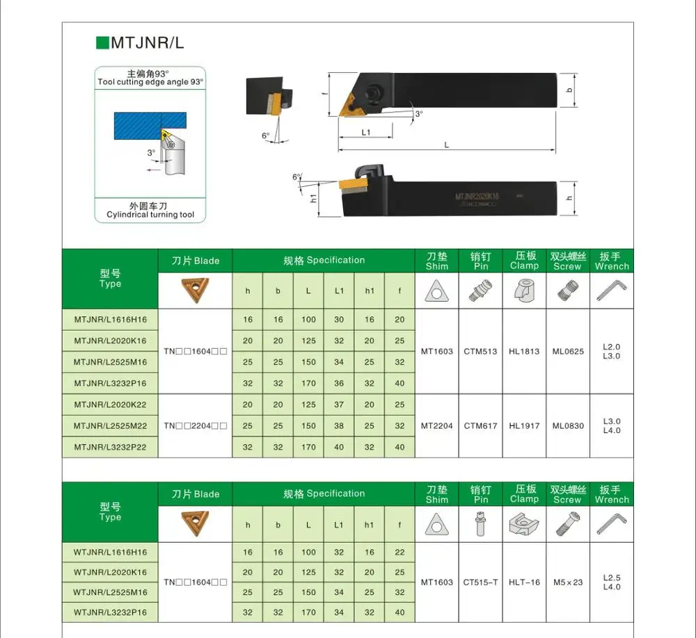 1 шт. токарный инструмент (не включая карбидные вставки)Или1 шт. токарный инструмент + 10 шт./кор. оригинальная вставка