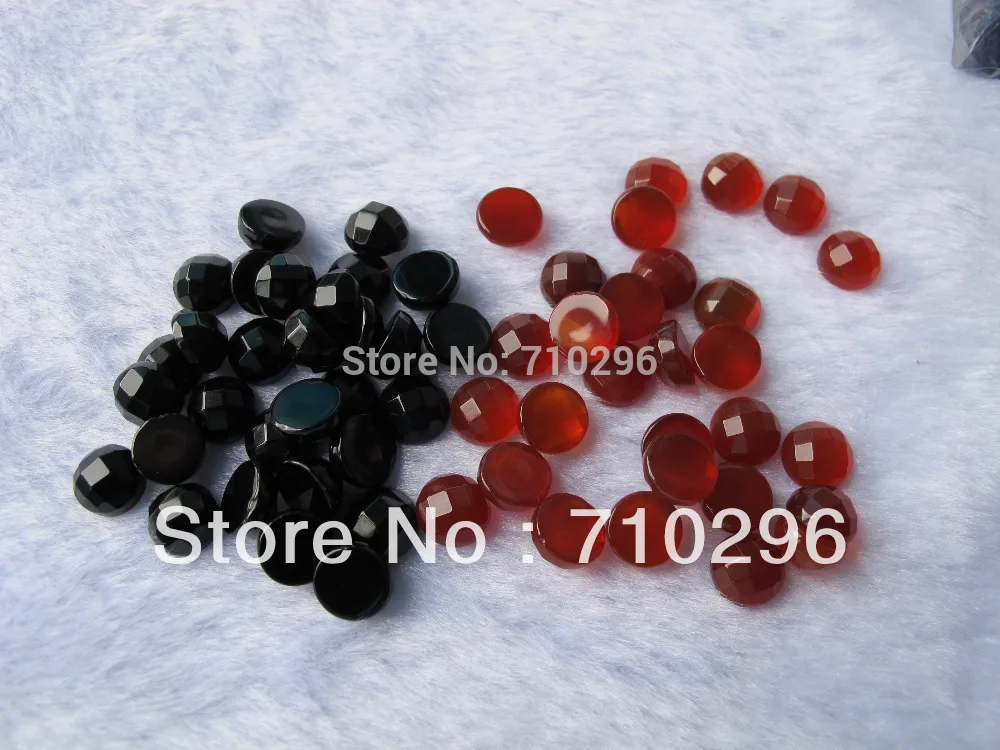 Оптовая продажа, 10 шт.упак. лот, кабина из красного агата, сердолик, черный агат, 8 мм, грань, Круглый драгоценный камень, кабошоны, подходят для ювелирных изделий, кольцо, сделай сам