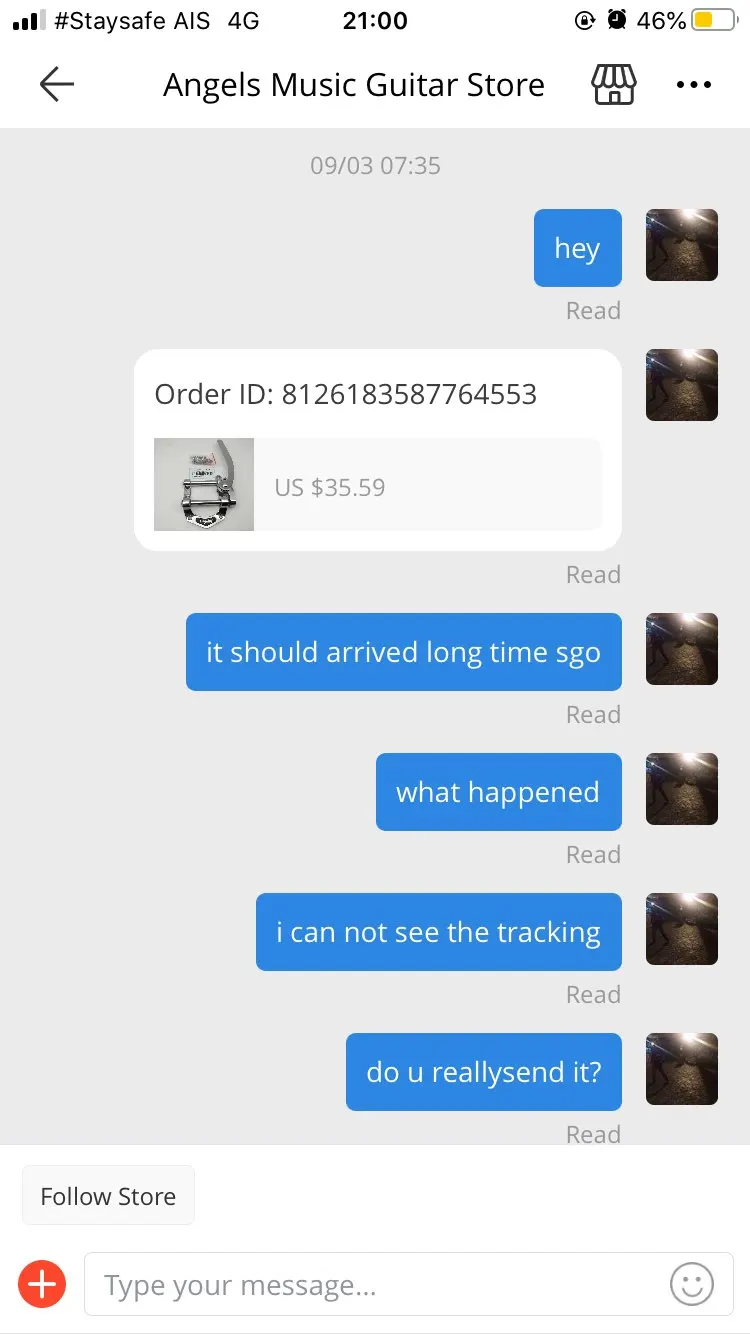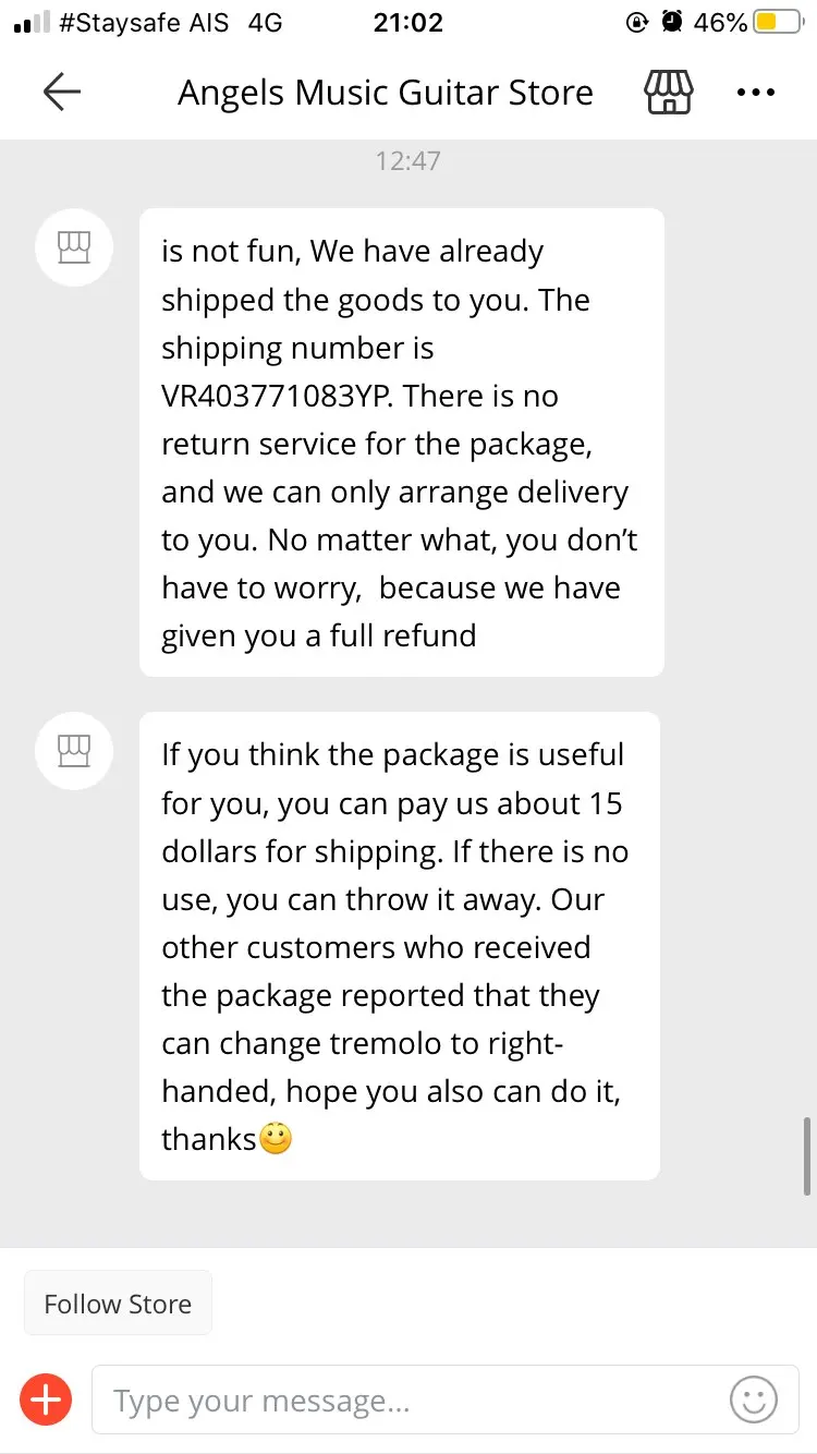 Я думаю купить это, потому что я увидел здесь обзор 5 звезд, но то, что я испытал, полностью отличается. Я ждать так долго, пока не открываю спор. Продавец решили вернуть деньги и отправить товары в качестве извинения за слишком долгое ожидание во время их проблем с общением. Но когда я получил посылки сегодня. Я нашла негодяев бигсби ...... Если вы читаете это, и вы согласны с тем, как они относятся к клиентам, это на ваше усмотрение. Отношение продавца гораздо более омерзительное, чем проблемы их общения