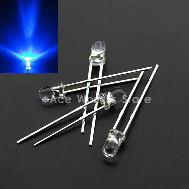 Бесплатная доставка 1000 шт.лот светодиодный 3 мм синий ультра яркий диод 3 мм круглый прозрачный синий светодиод