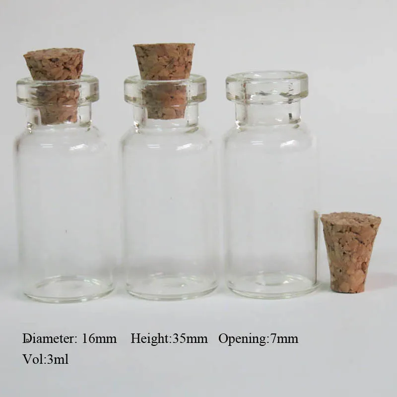 100 х 3 мл Мини Прозрачное Янтарное стекло бутылка с деревянной Корк 3cc небольшые пустые емкости для пробы желая бутылки используется в подарки коробка для хранения