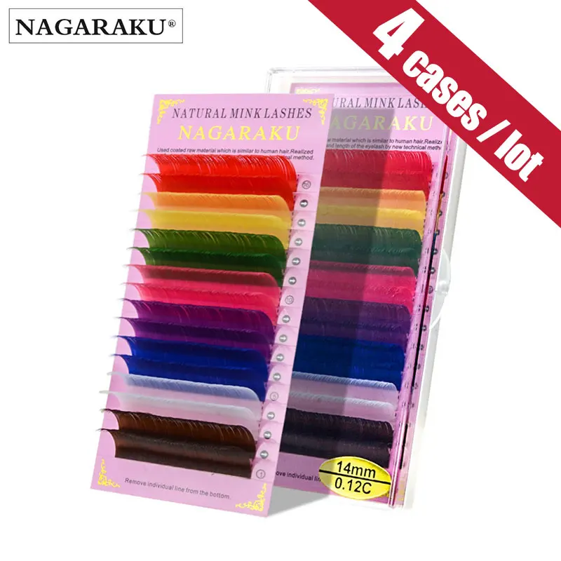 NAGARAKU 4 Штук Микс Цветные Ресницы для Наращивания Ресницы Макияж Норковые Ресницы Мягкие Легкие Натуральные Ресницы 8 Цветов Высококачественные Натуральные Норки