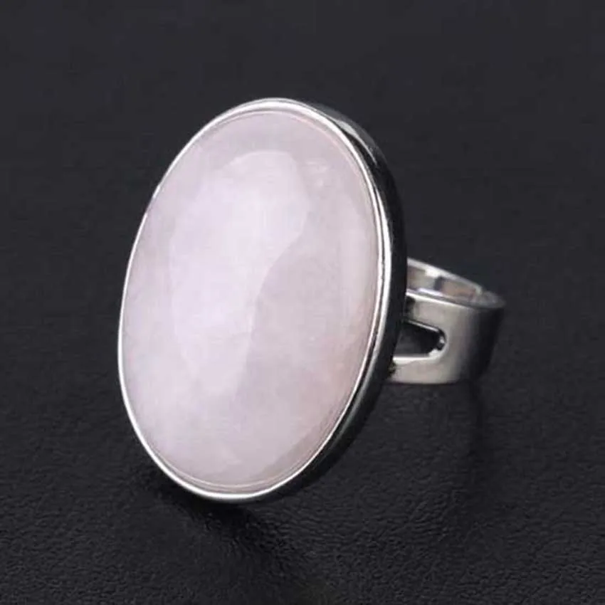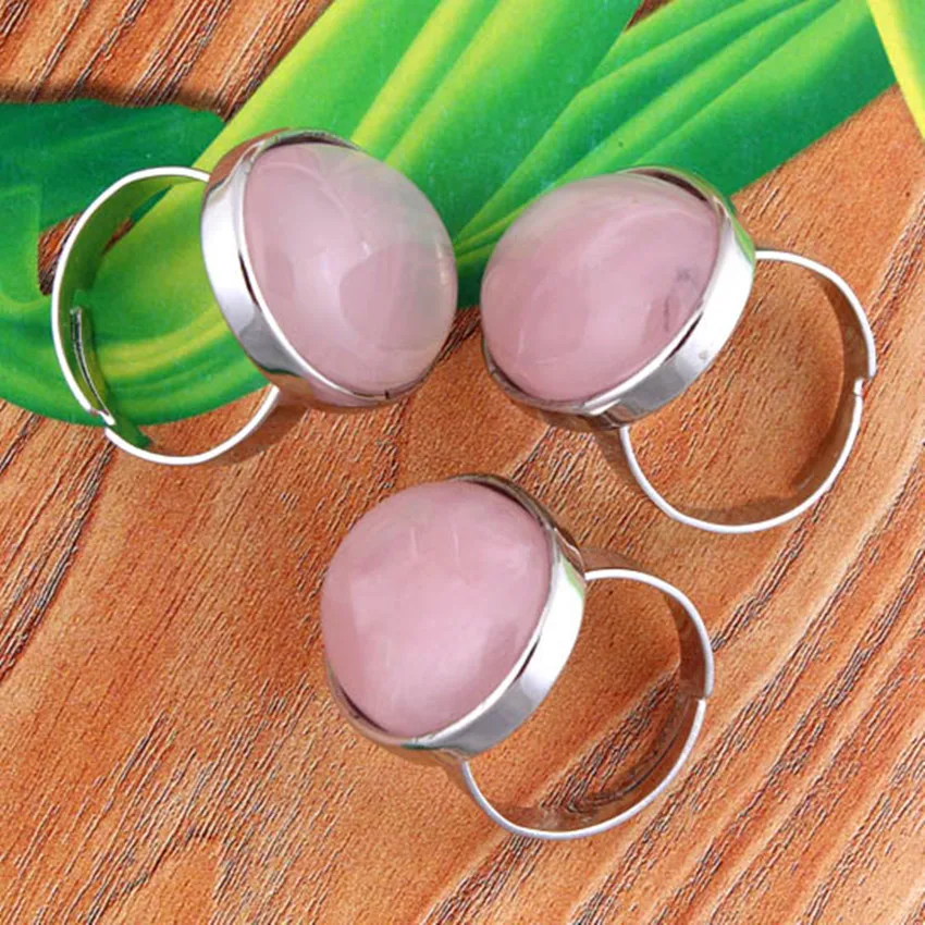 Крафт-бусы трендовые посеребренные овальные изменяемые натуральный розовый кварцевый кристалл обручальные кольца для женщин ювелирные изделия
