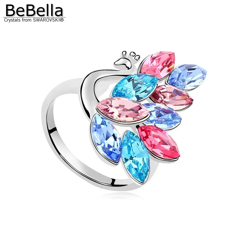 Кольцо BeBella с павлиньими кристаллами, сделанное из австрийских кристаллов Сваровски для девочек, рождественский подарок
