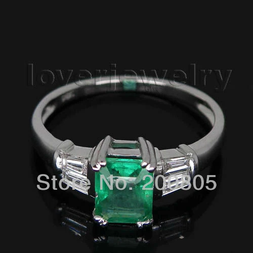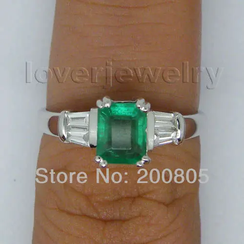 Твердое 18kt Белое золото 1.51ct бриллиантовое Изумрудное кольцо