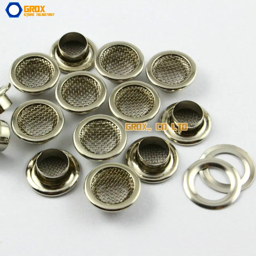 100 комплектов круглых люверсов с сеткой внутри.