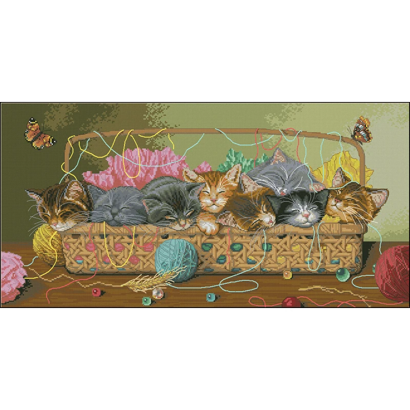 Набор для вышивки крестиком, набор котов в корзине, кошачий котенок,Бесплатная доставка