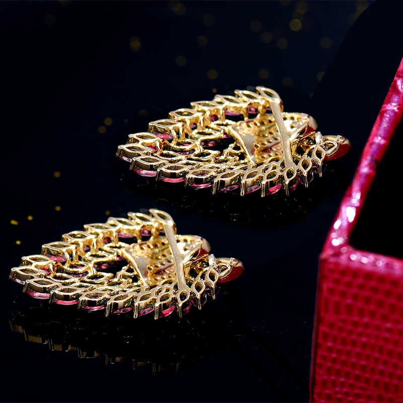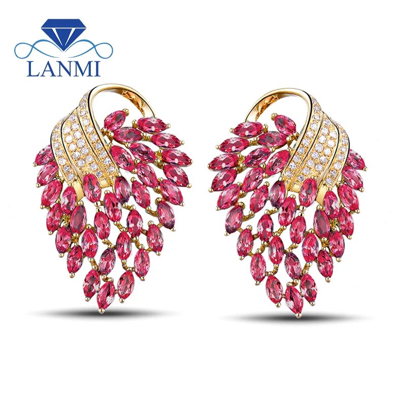Женские серьги с красными рубинами LANMI, однотонные серьги с бриллиантами из желтого золота 18 К, вечерние ювелирные изделия