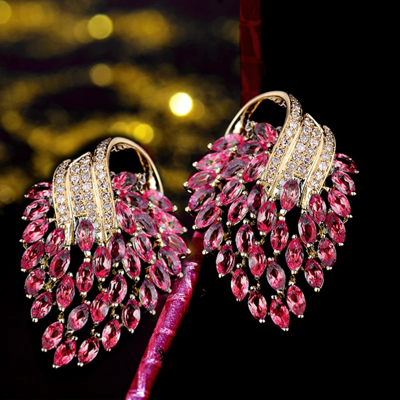 Тип металла:Однотонный 18kt Золотой-белый Вес золота (грамм):8,46 г Стиль:Алмаз иРозовый красный рубинСерьги