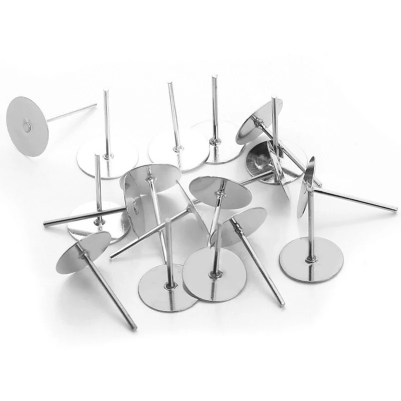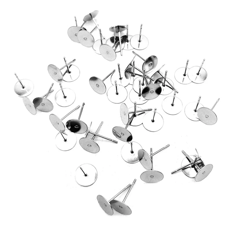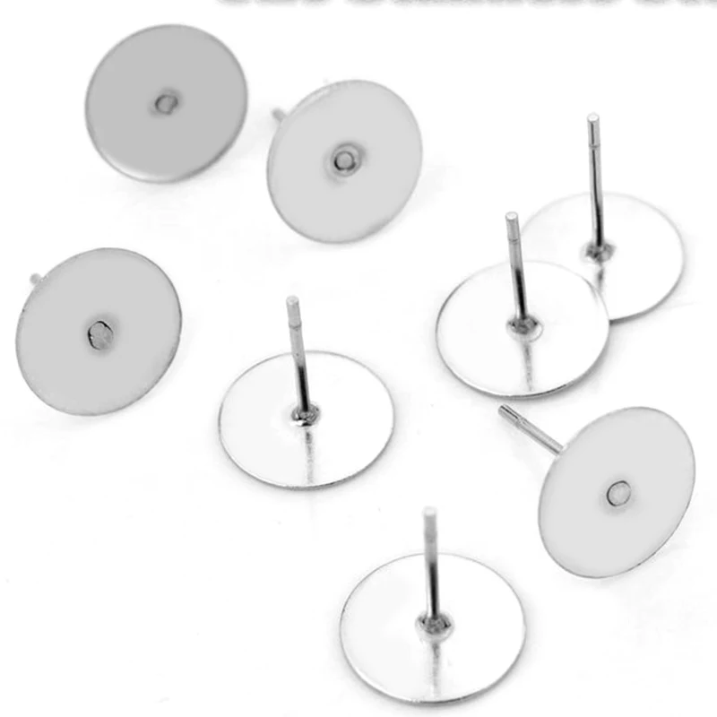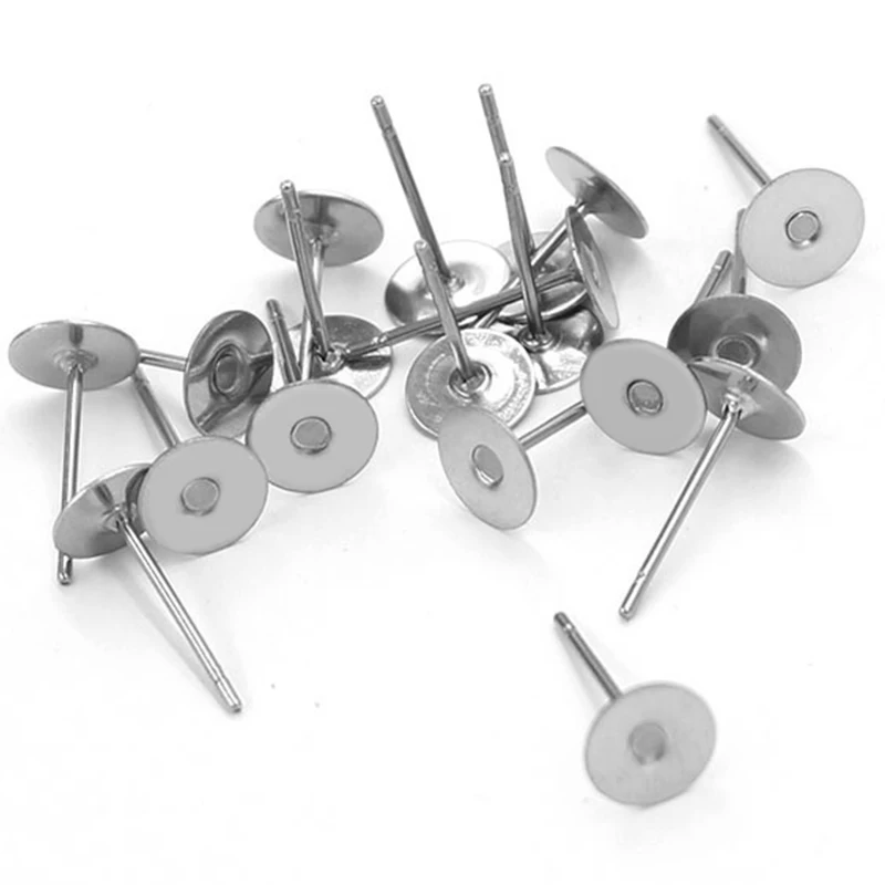 Без выцветания, 50 шт., пустая плоская серьга из нержавеющей стали, шпилька, подходит для 3, 4, 5, 6, 8, 10 мм, настройки кабошона, аксессуары для самостоятельного изготовления ювелирных изделий