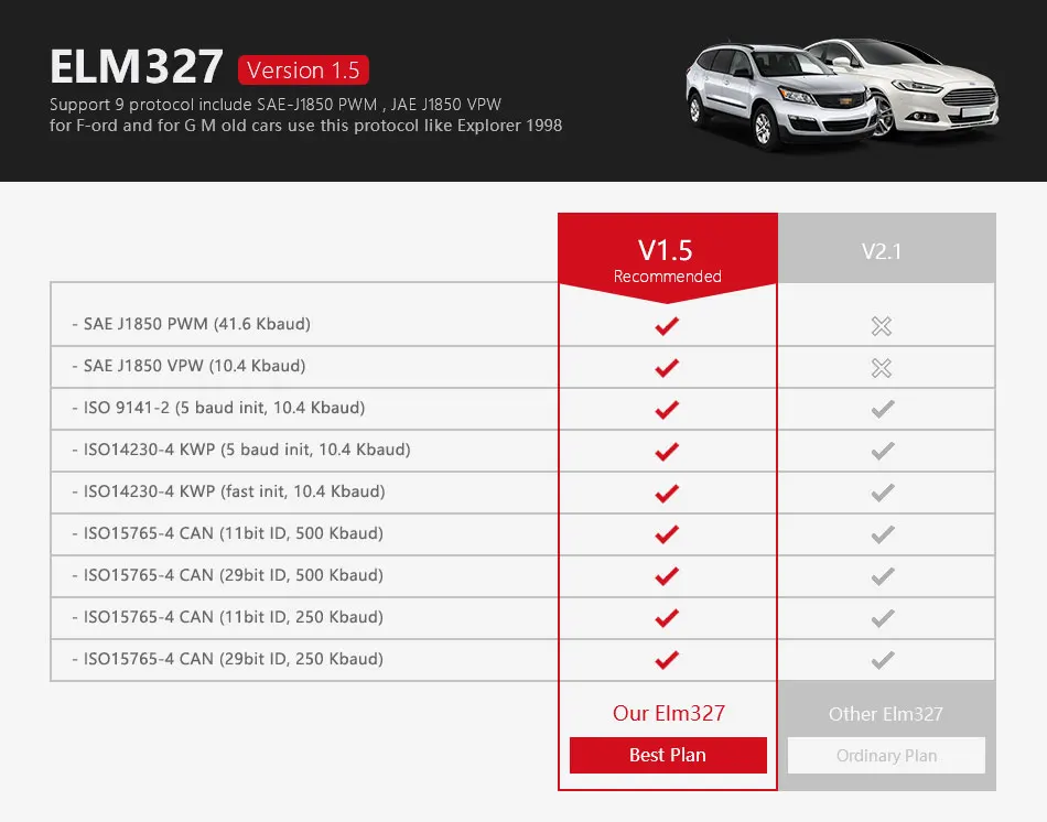Для Ford Focus 1 2004 не подошёл. V2.1 не поддерживает протокол SAE J1850 PWM. К моей машине необходим с версией V1.5. А так пришло очень быстро и качественно.