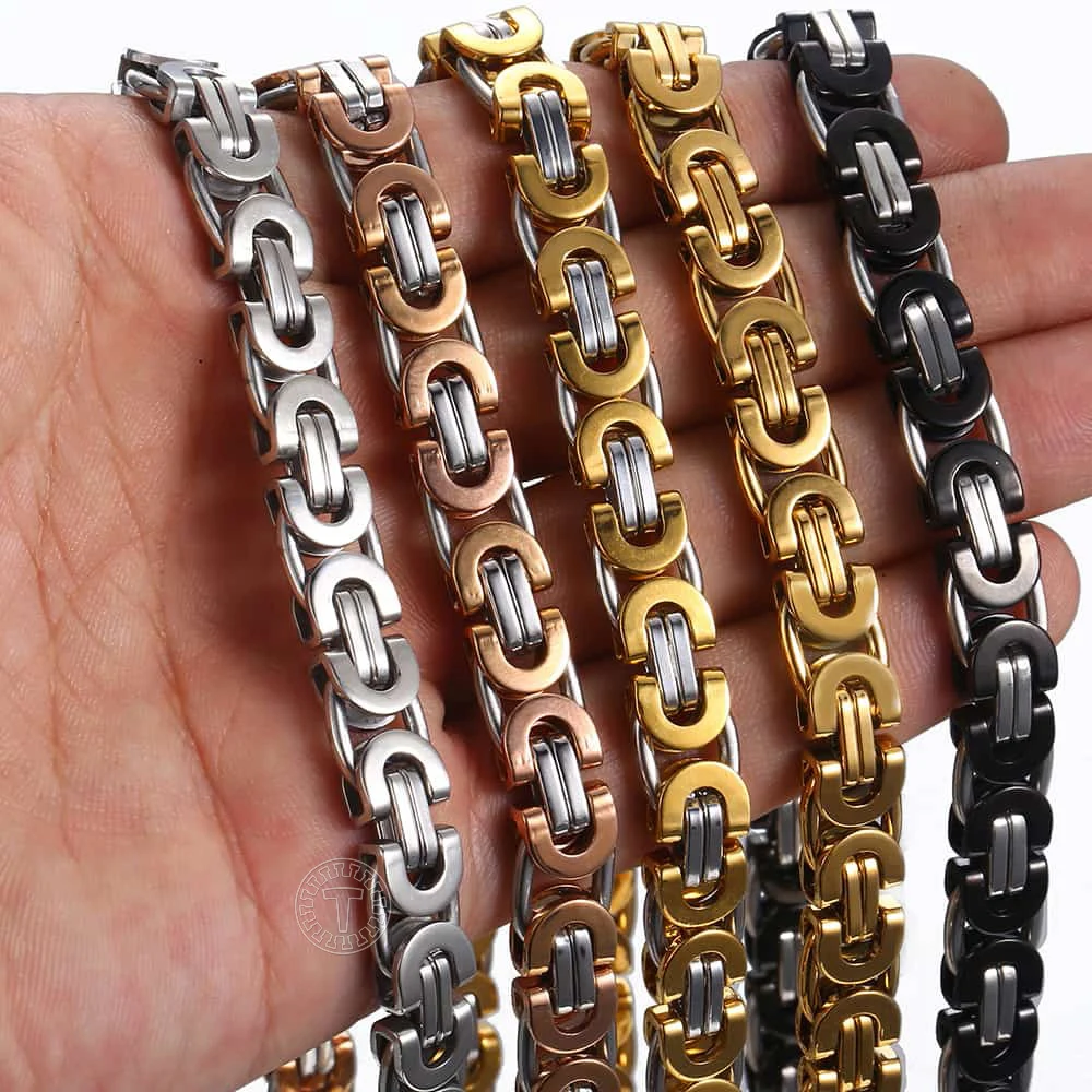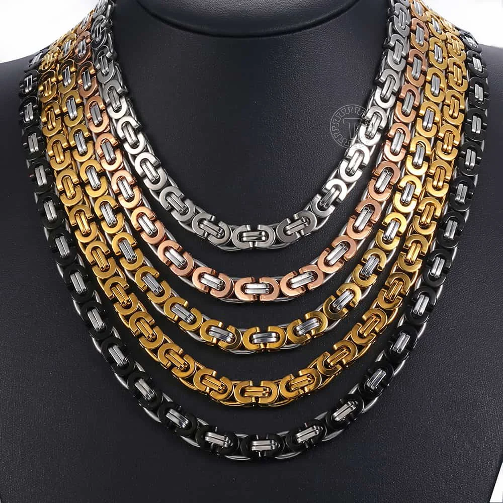 Ожерелье Davieslee LKNM22 для мужчин, плоская Византийская цепочка из нержавеющей стали черного, золотого, серебряного цвета, Винтажные Ювелирные изделия 6811 мм