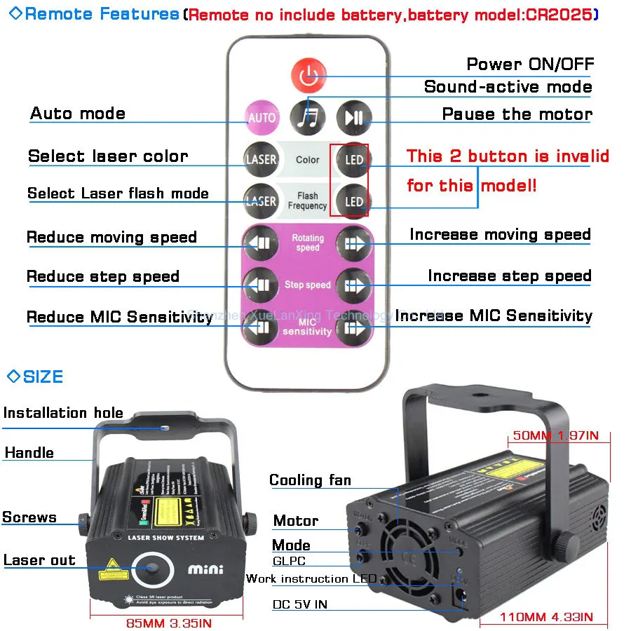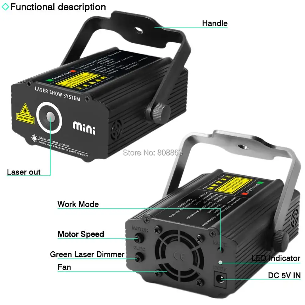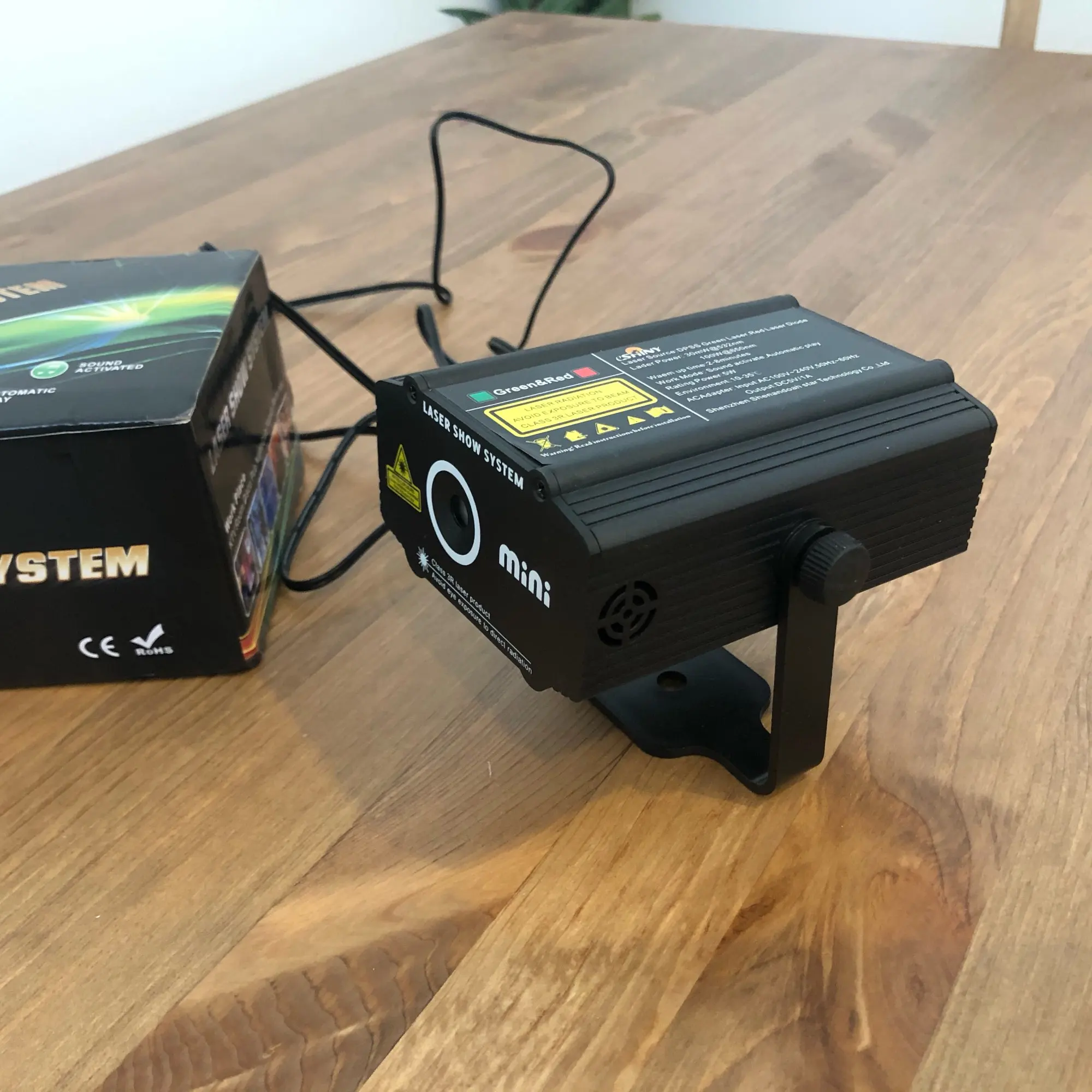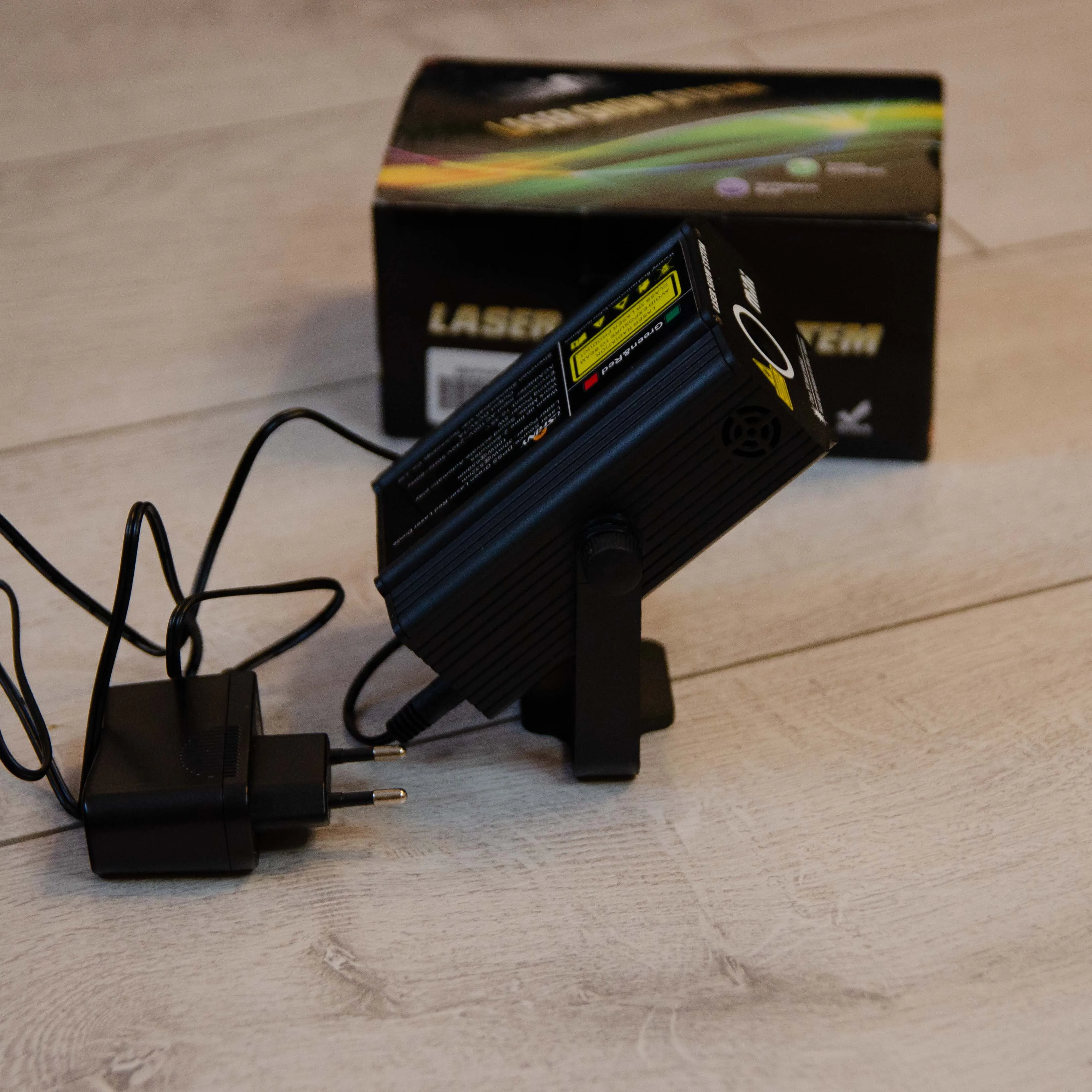 Доставка заняла около месяца, трек-номер отслеживался. Посылка была упакована надёжно, приехала в целости и сохранности. Размер:11 см * 8,5 см * 5 см. В комплект входит: проектор, подставка с креплениями для установки проектора, инструкция и кабель питания переменного тока с штепсельной вилкой. Проектор отлично подойдёт для любого праздника, работает от розетки. Рассчитан на размер площади от 4 до 200 квадратных метров. Время непрерывной работы: 6 часов, потом нужно сделать перерыв 30 минут. Материал: чёрный высокопрочный пластиковый корпус. Качество сборки отличное, неприятного запаха нет, по весу очень лёгкий. У лазерного диода высокое качество, светит ярко в двух цветах: красный, зелёный, вместе и по очереди.