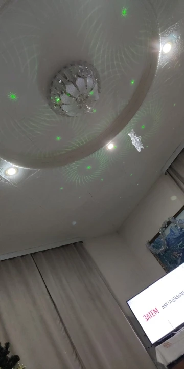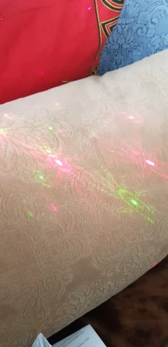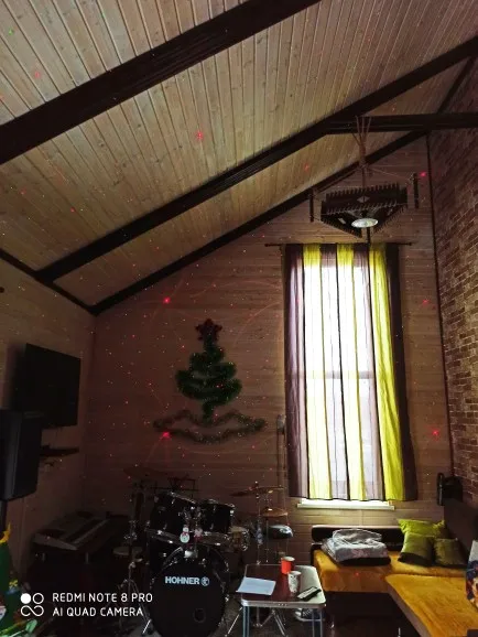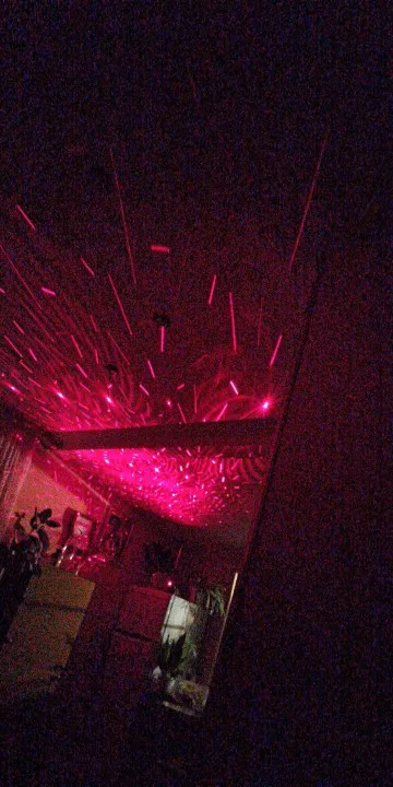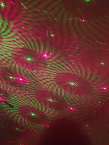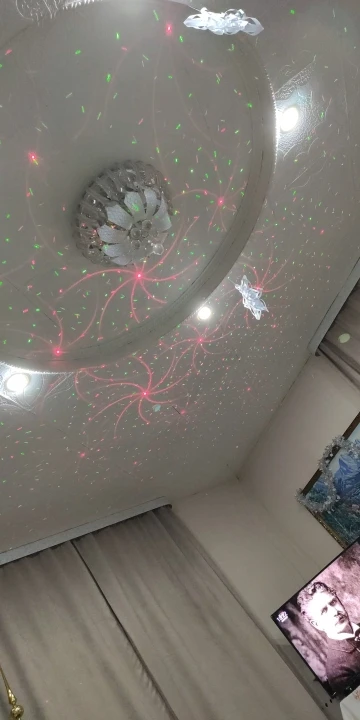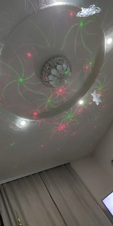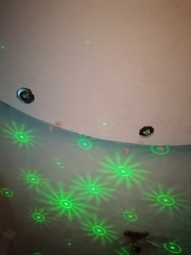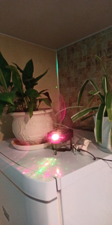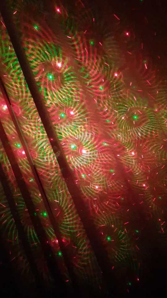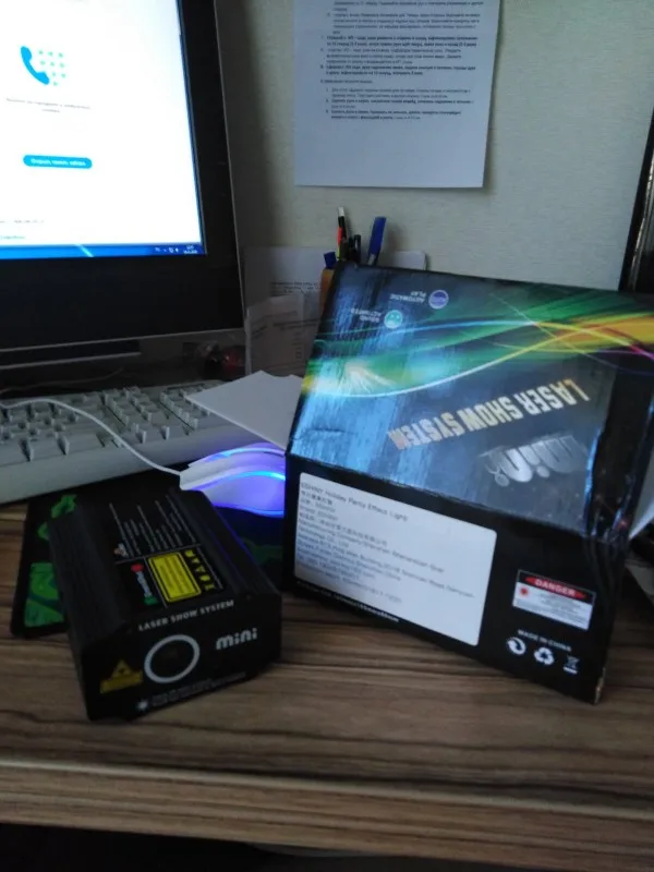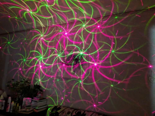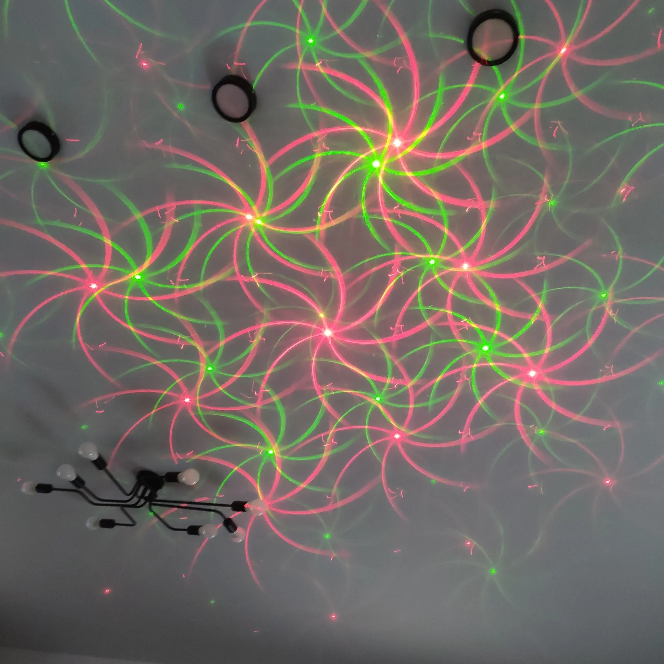 Классный проектор, стоит своих денег, настроение задаёт, супер вещь! Корпус проектора пластиковый, в комплекте идёт специальный подвес, который можно поставить или подвесить, как вам нравится. На лицевой стороне проектора расположено отверстие, из которого светит лазерный луч розовыми и зелёными лучами. Как только включаешь в розетку, шоу начинается. Проектор светит очень ярко и динамично, рисунок проекций чёткий, охватывает 30кВ.м точно, и для высоких потолков идеально. Особенно ярко его видно конечно в полной темноте. Проекция имеет красивые и чёткие рисунки, в виде красивых бегающих точек, зигзагов и прочих. Доставка составила всего 10 дней, проектор был отлично упакован, в плотный почтовый пакет, пупырку и коробку магазина, товар рекомендую