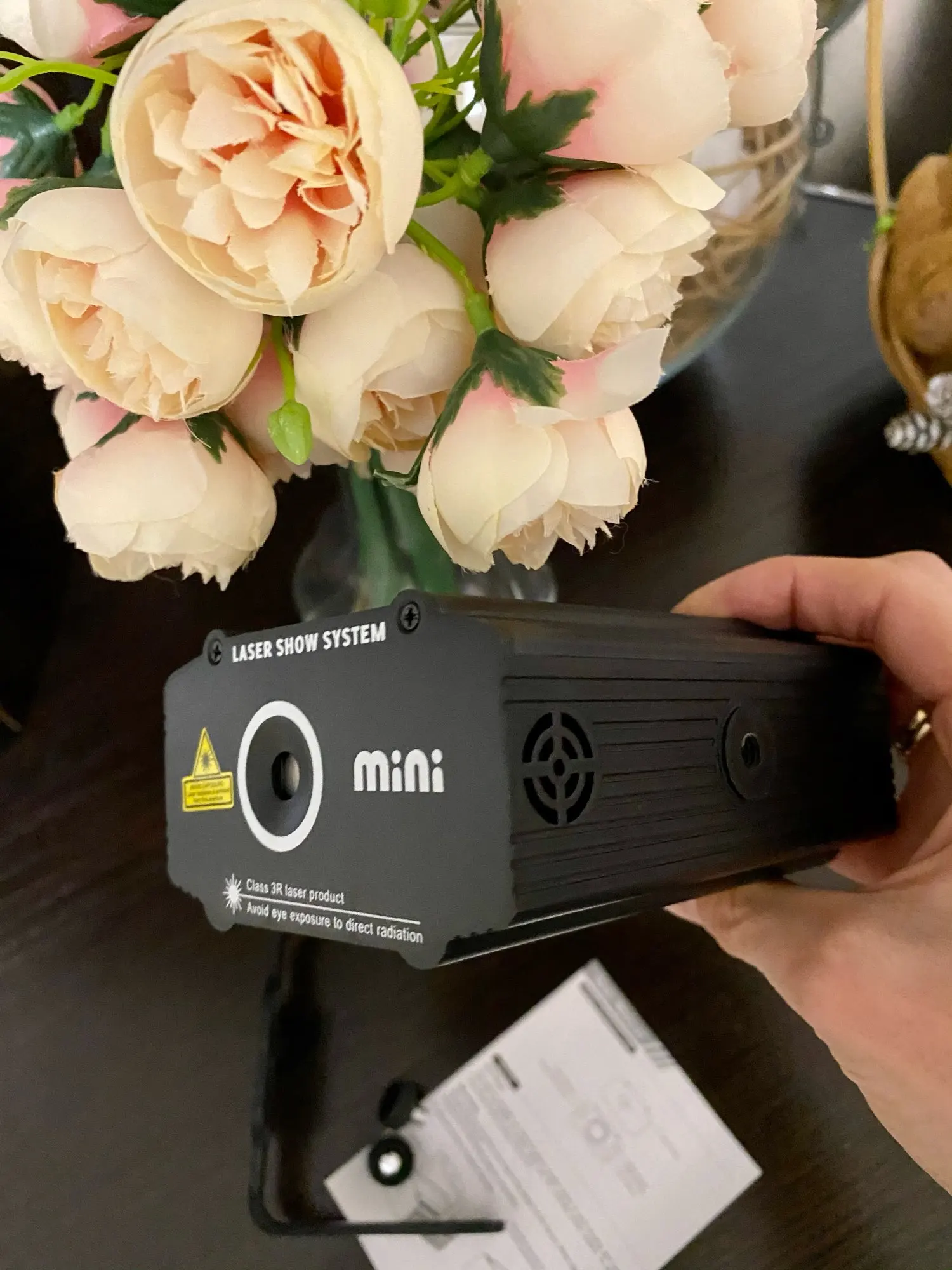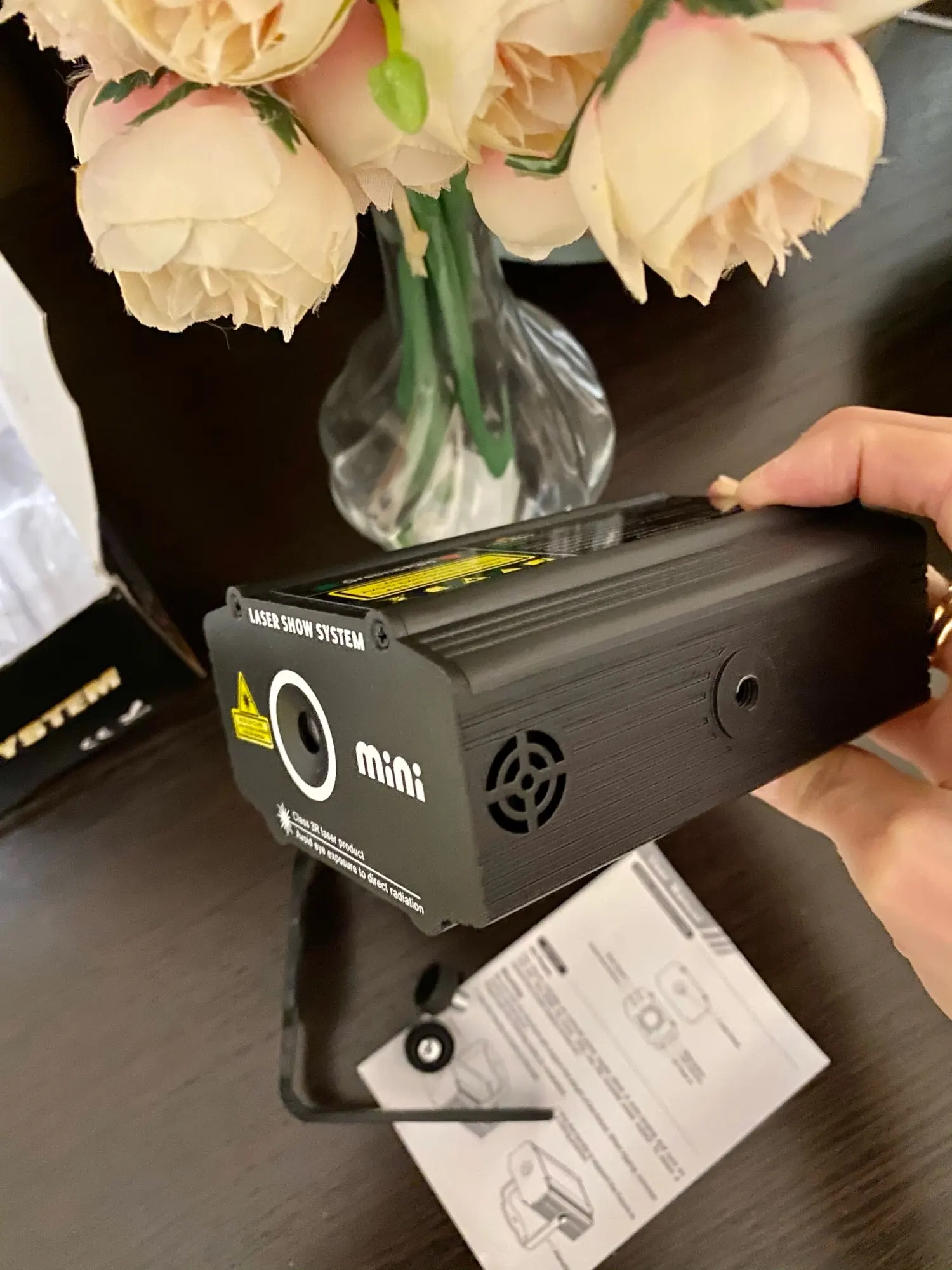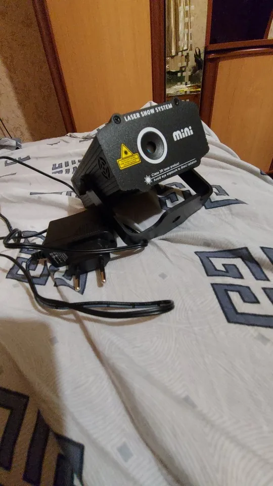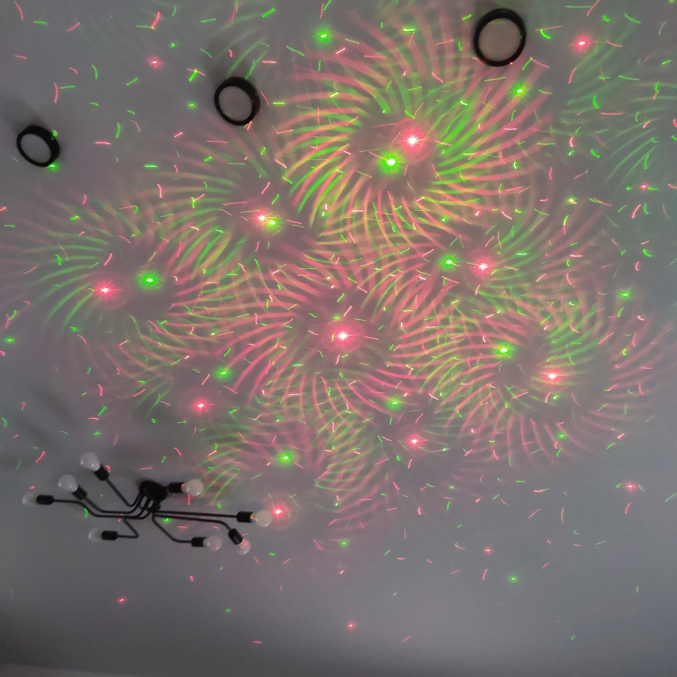 Лазерный проектор с красивыми картинами для домашней вечеринки заказала на Новый год и РождествоПроектор работает от сети, в комплекте идёт пульт(включения/выключения, переключения картин, прибавления/убавления яркости,пауза,таймер), USB-кабель, инструкция па английском языке и наземный штатив для возможности установления на землю или другую поверхность. Проектор полностью освещает огромный зал, хорошо перекручивая разные картинки. Картинки разноцветные, крутятся и вертятся. Можно использовать для кафе и ресторанов. Корпус металлический, водонепроницаемый, маленький и удобный. Гарантия 1 год!!! Замечательный лазерный проектор, качественный. Несомненно рекомендую к покупке!!!❤️